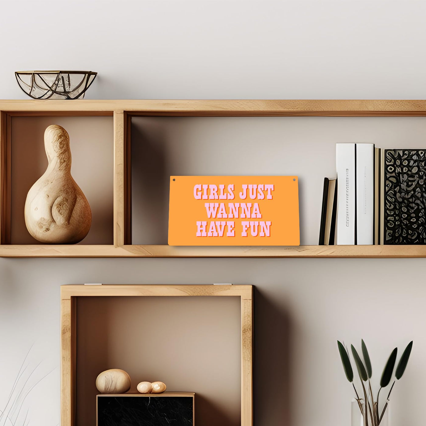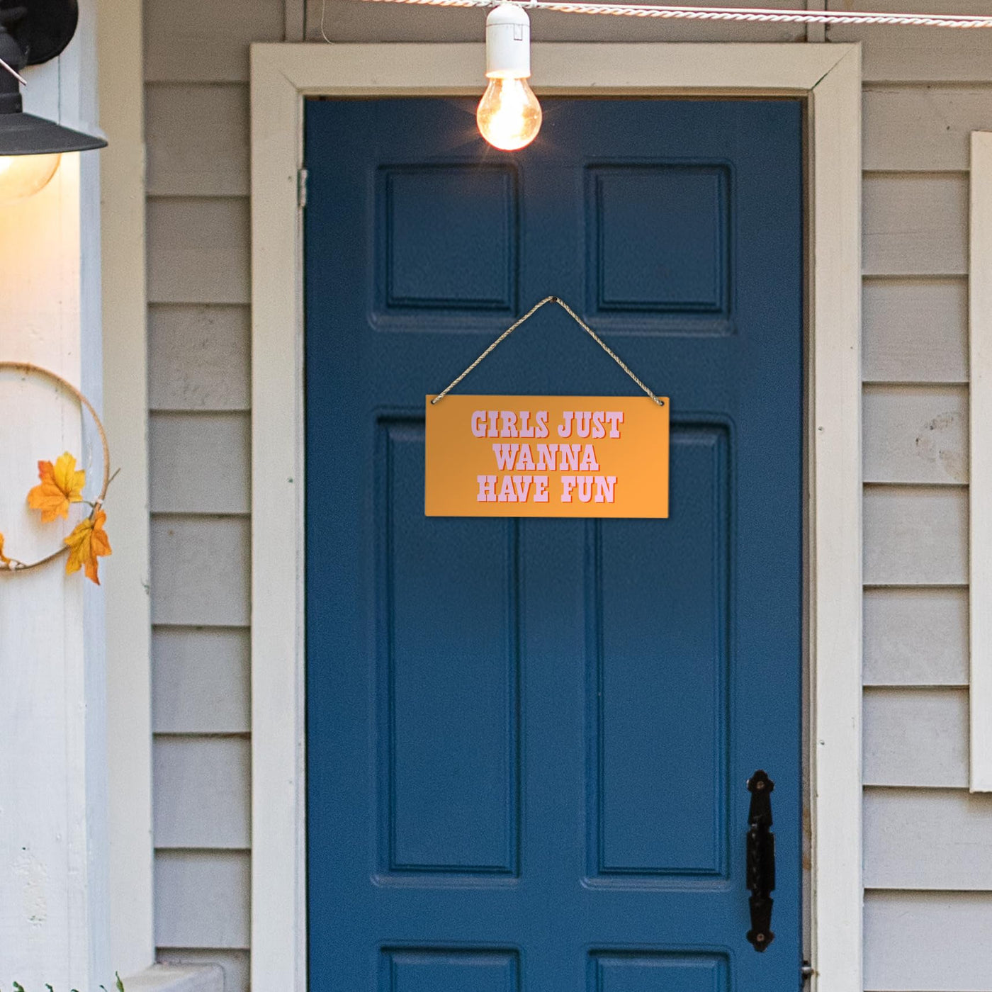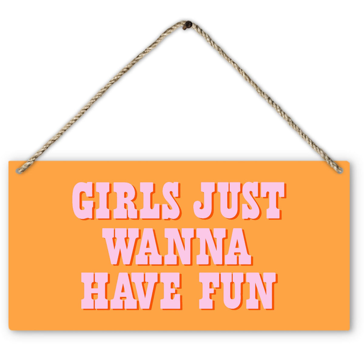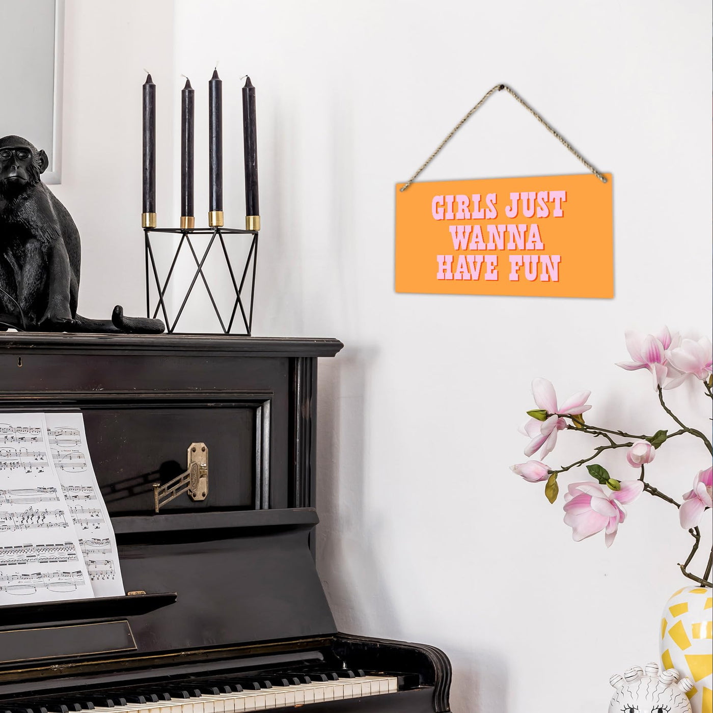Hot Pink Preppy Girls Just Wanna Have Fun Printed Wood Plaque Sign Wall Hanging,Trendy Preppy Hanging Wall Signs for Girls Room