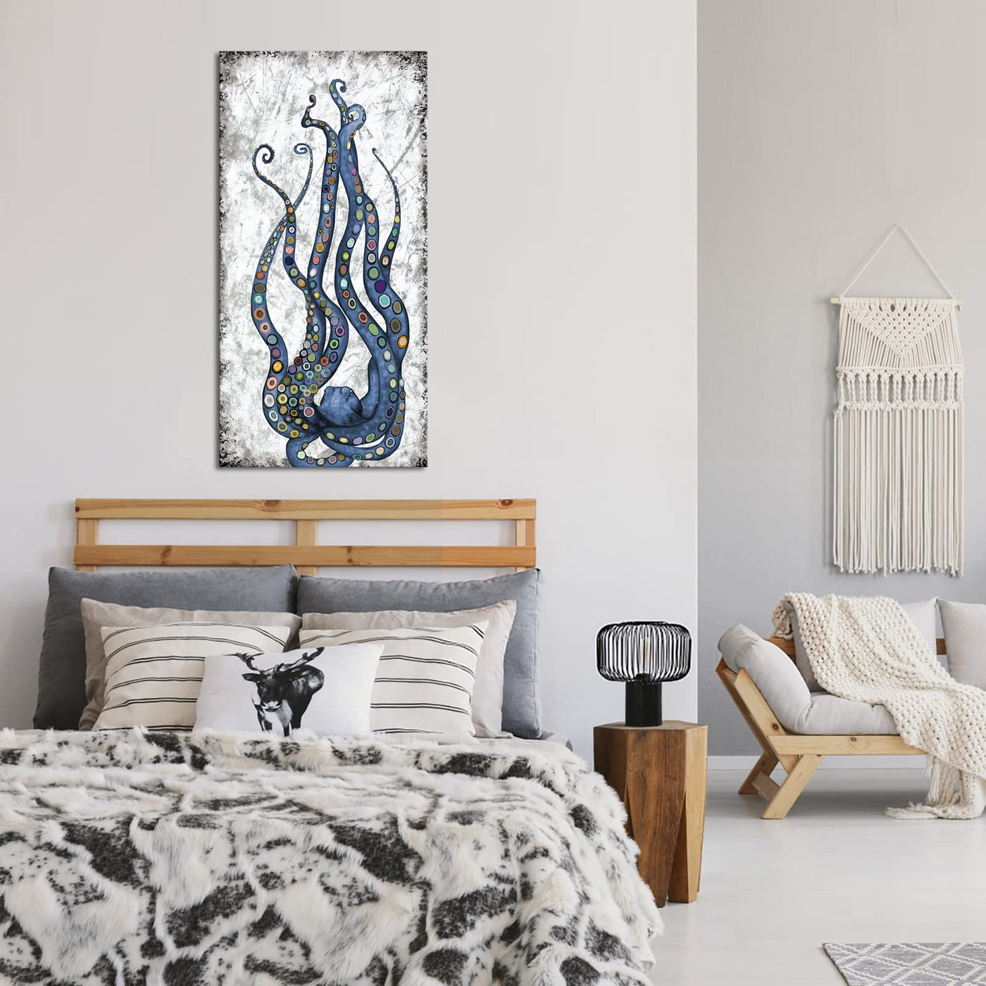 Iknow Foto Vertical Canvas Wall Art Abstract Grey And Blue Octopus Painting Printed On Canvas Sea Life Picture Poster Gallery Wr
