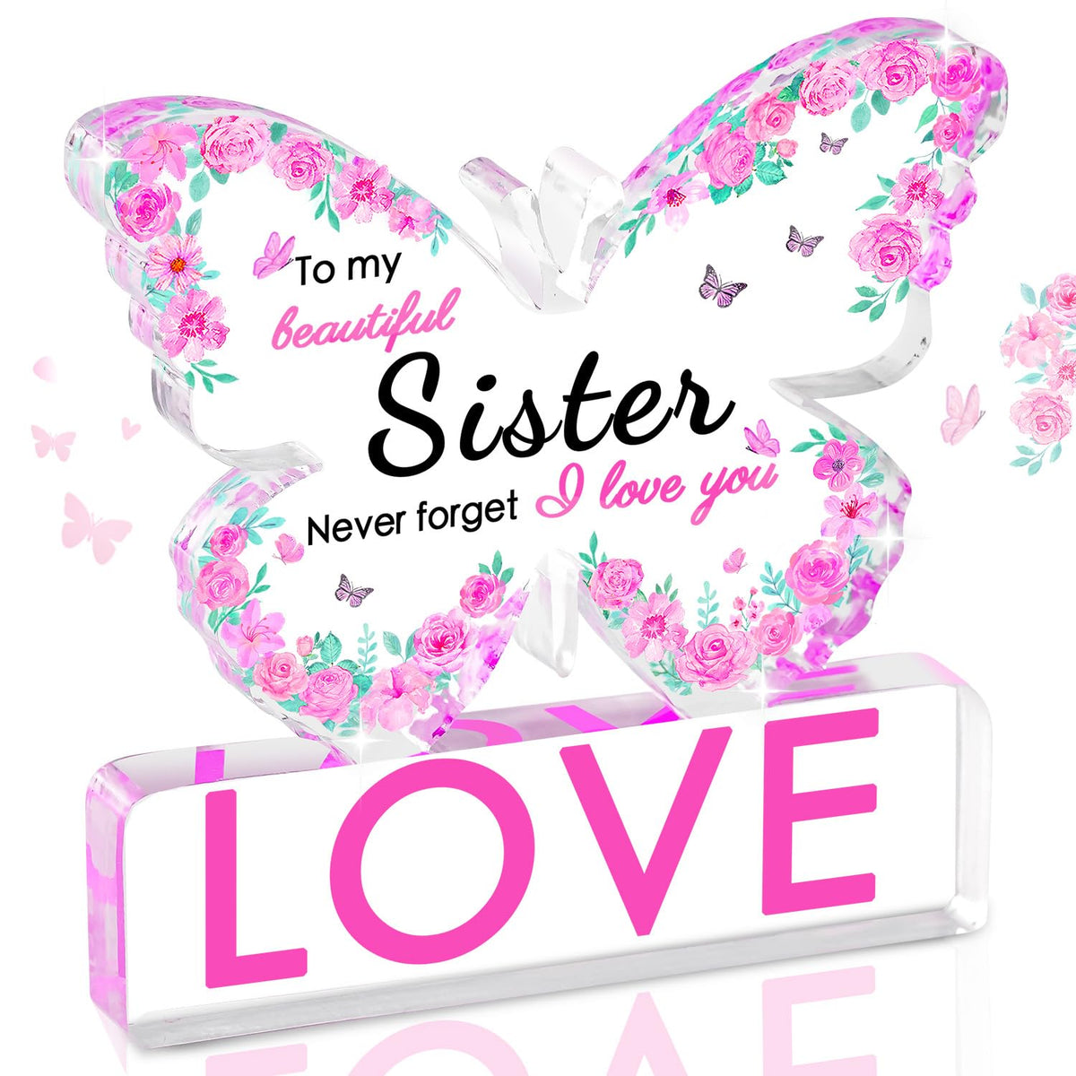 iLifemate Gifts for Sister, Sister Birthday Gifts - Acrylic Butterfly Engraved Plaque 3.9 3.9 0.5 inch, Sister Gifts for W