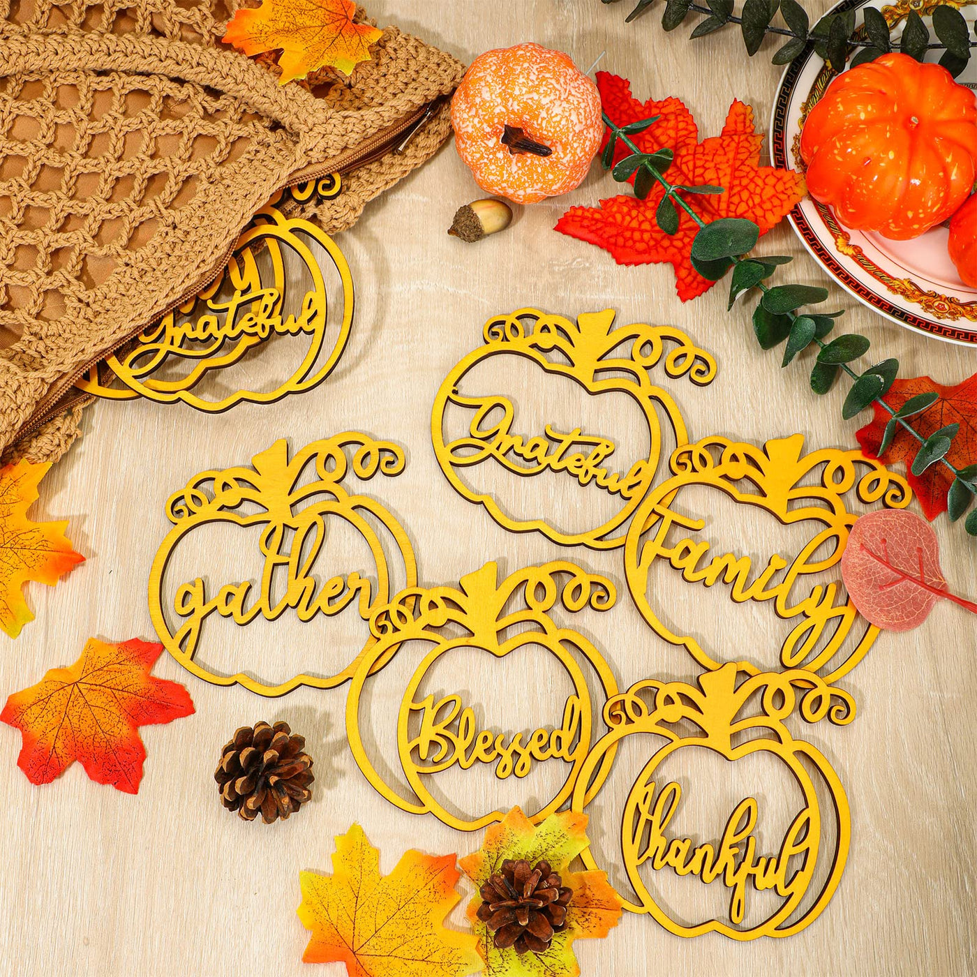 Jetec 40 Pieces Thanksgiving Cutout Letter Sign Pumpkin Dinner Plates Decor Thankful Blessed Grateful Inspirational Letter Cutou