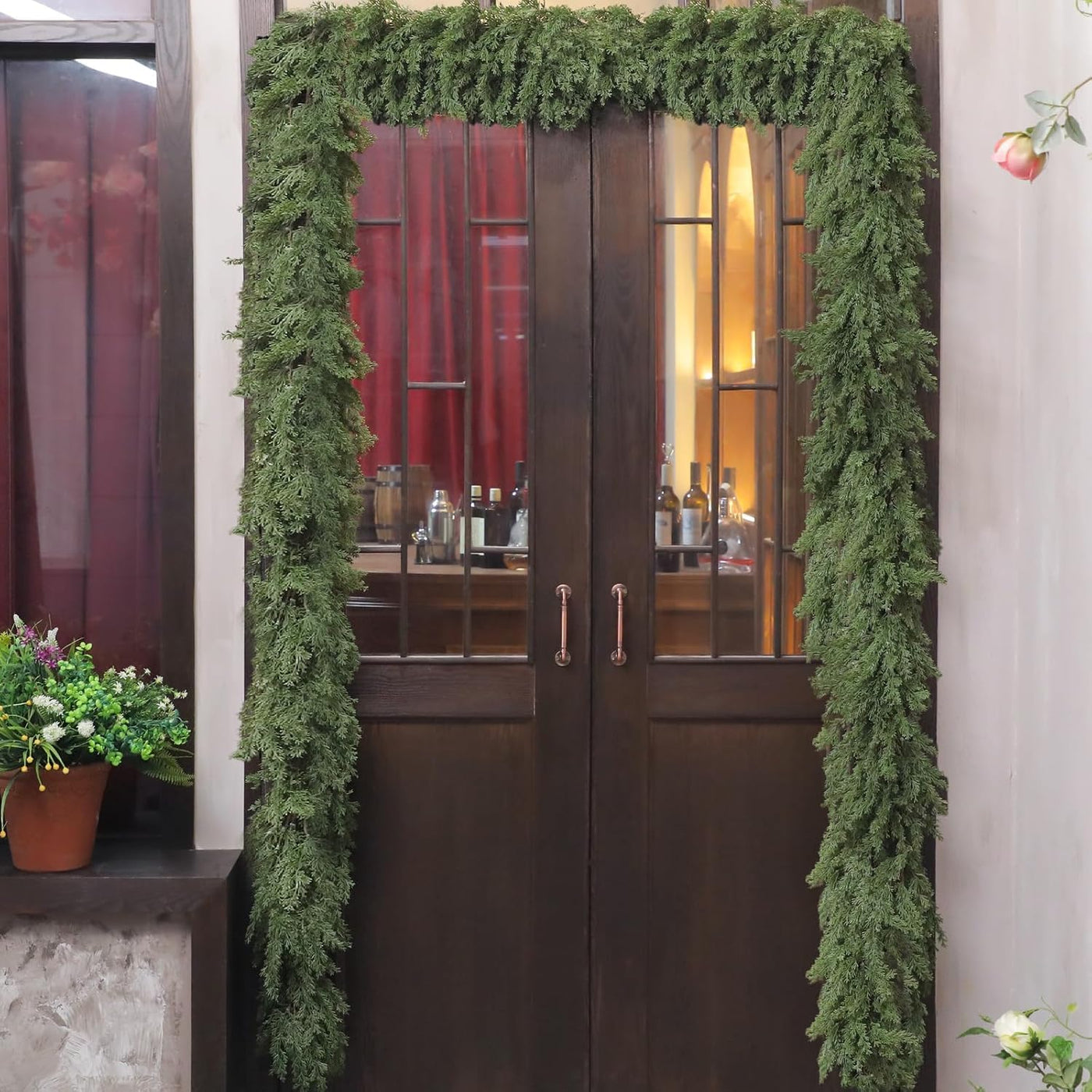 Jutom 1 Pcs 12 ft Thick Christmas Cedar Garland Artificial Realistic Soft and Flexible Full Faux Green Cedar Pine Garland for Ho