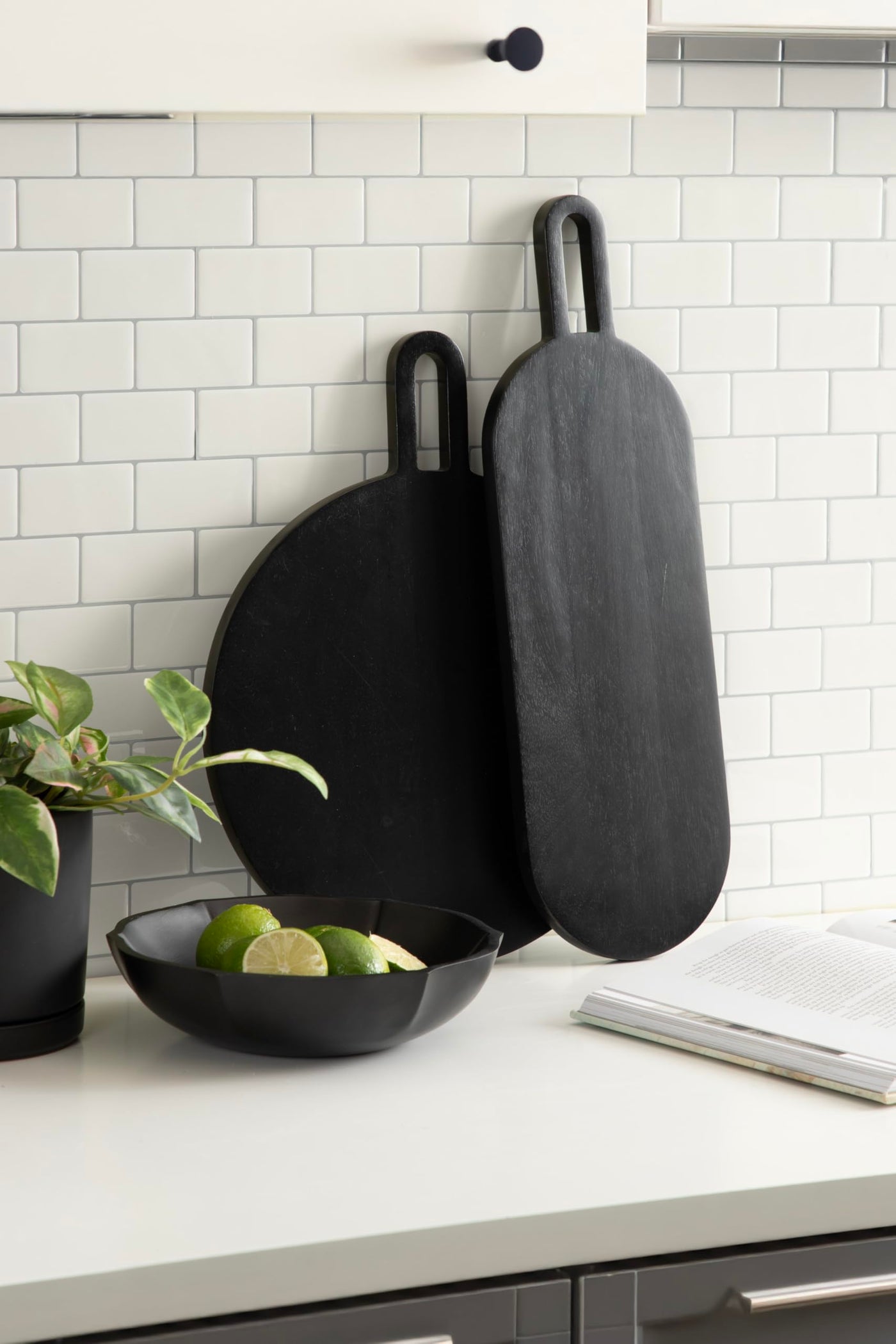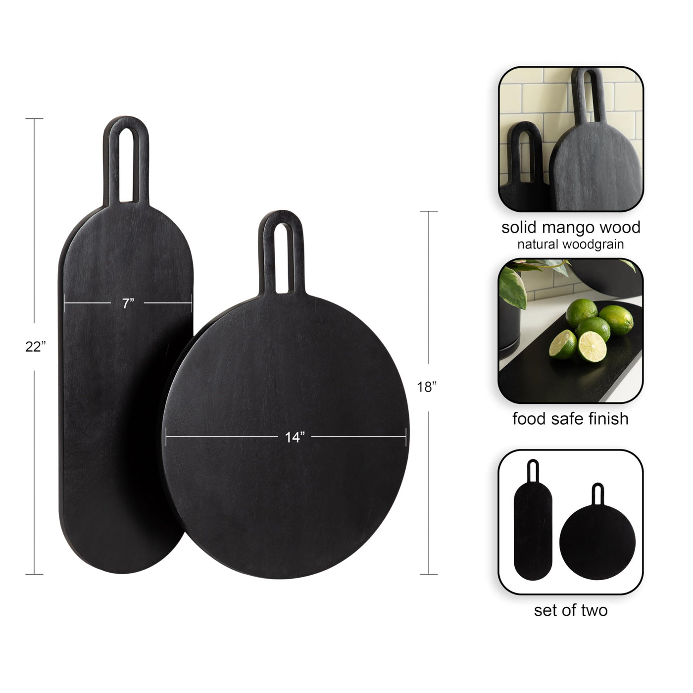 Kate and Laurel Staven Transitional Two-Piece Serving Boards Set, 7 x 22 and 14 x 18, Black, Modern Food-Safe Charcuterie Boards