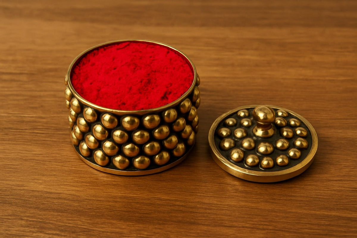 KULIA Sindoor Small Box Brass Round Shape Jewellery Trinket Decorative Box Hindu Pooja Set Kumkum Small Box with Free Sindur Pow