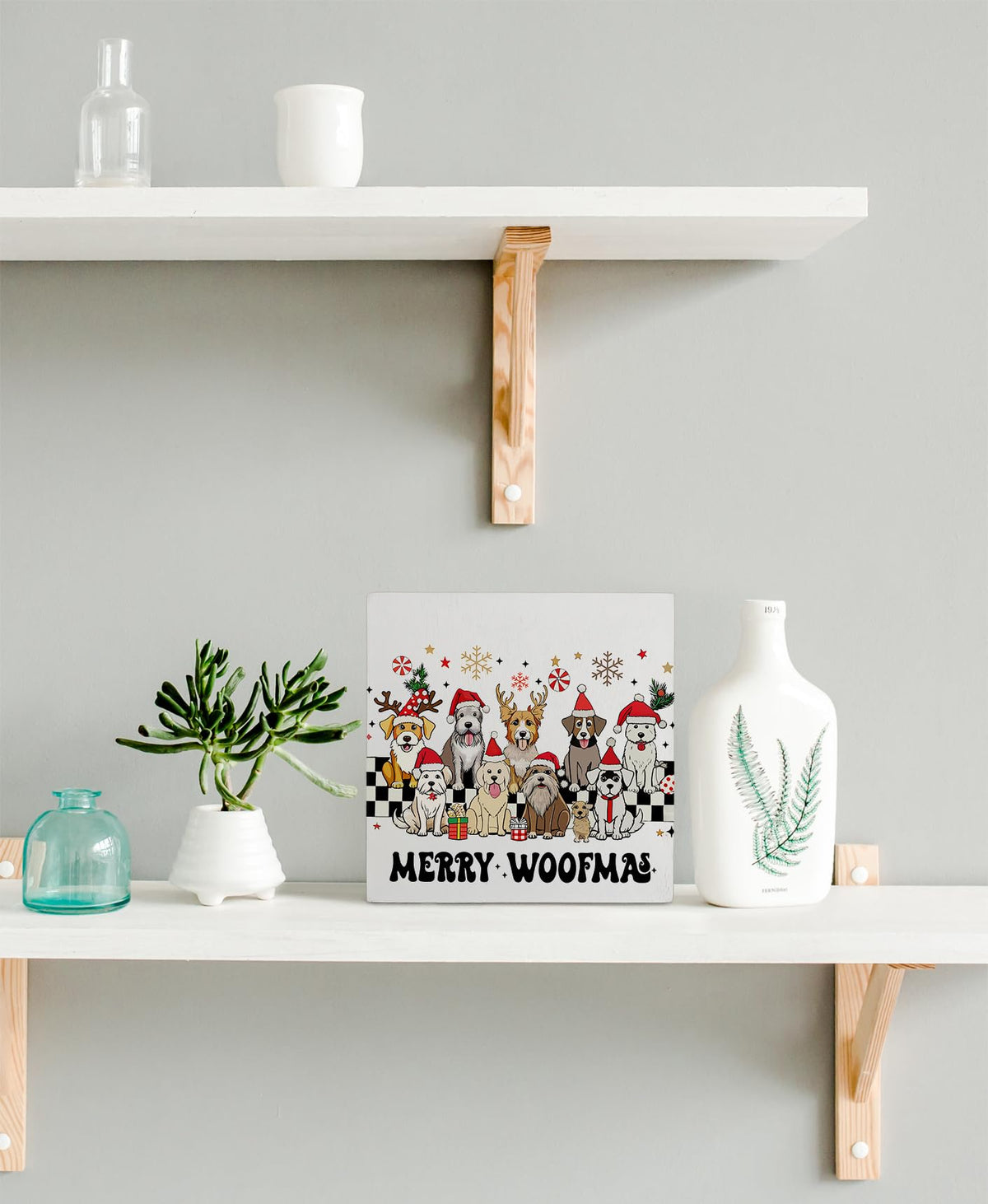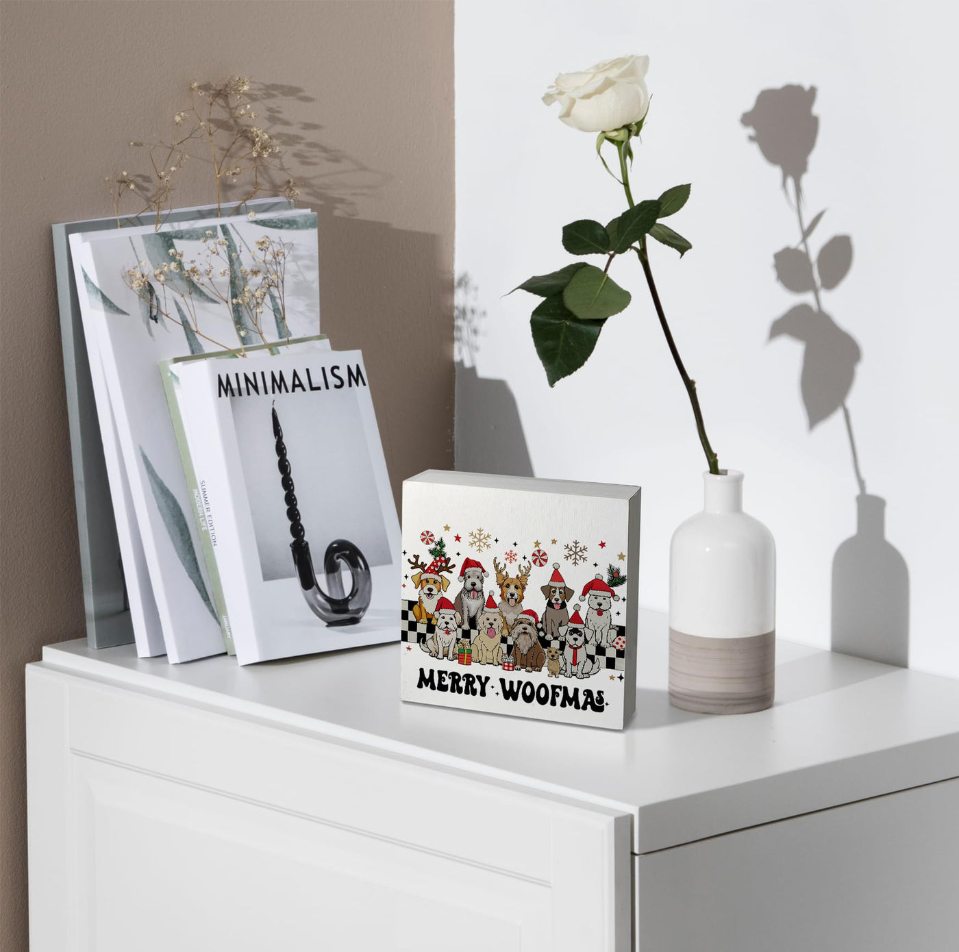 kunlisa Dog Christmas Wooden Sign, Dog Lover Gifts, Merry Woofmas Christmas Cute Puppy Holiday Wood Box Sign for Home Office Des