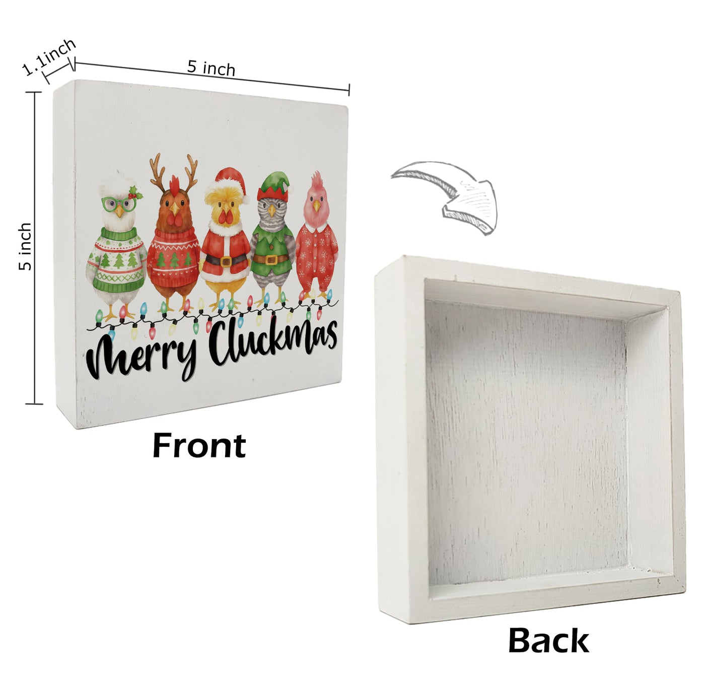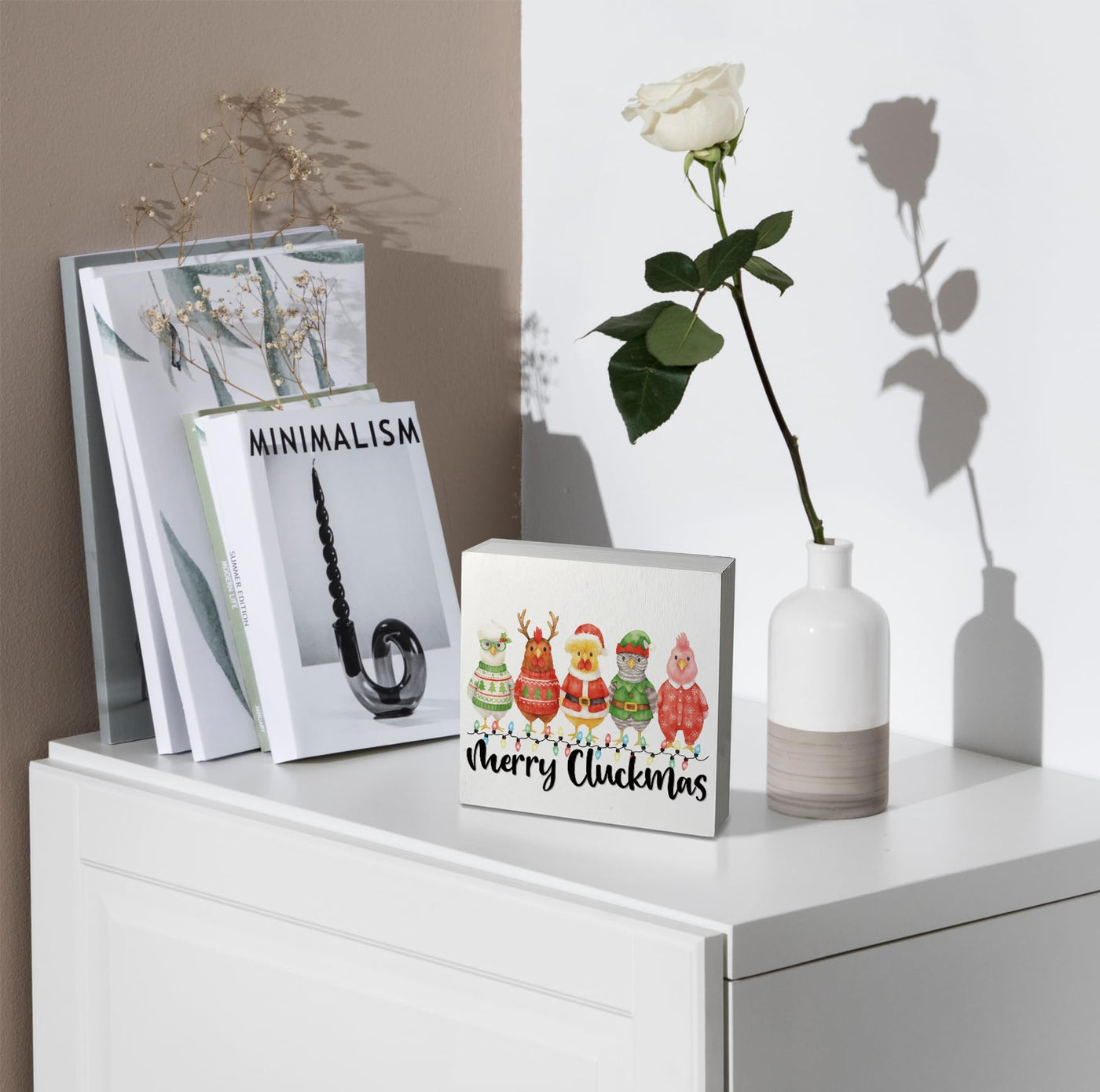 kunlisa Funny Christmas Chicken Wooden Sign, Farmhouse Christmas Decor, Chicken Lover Gifts, Xmas Hen Rooster Wood Box Sign for