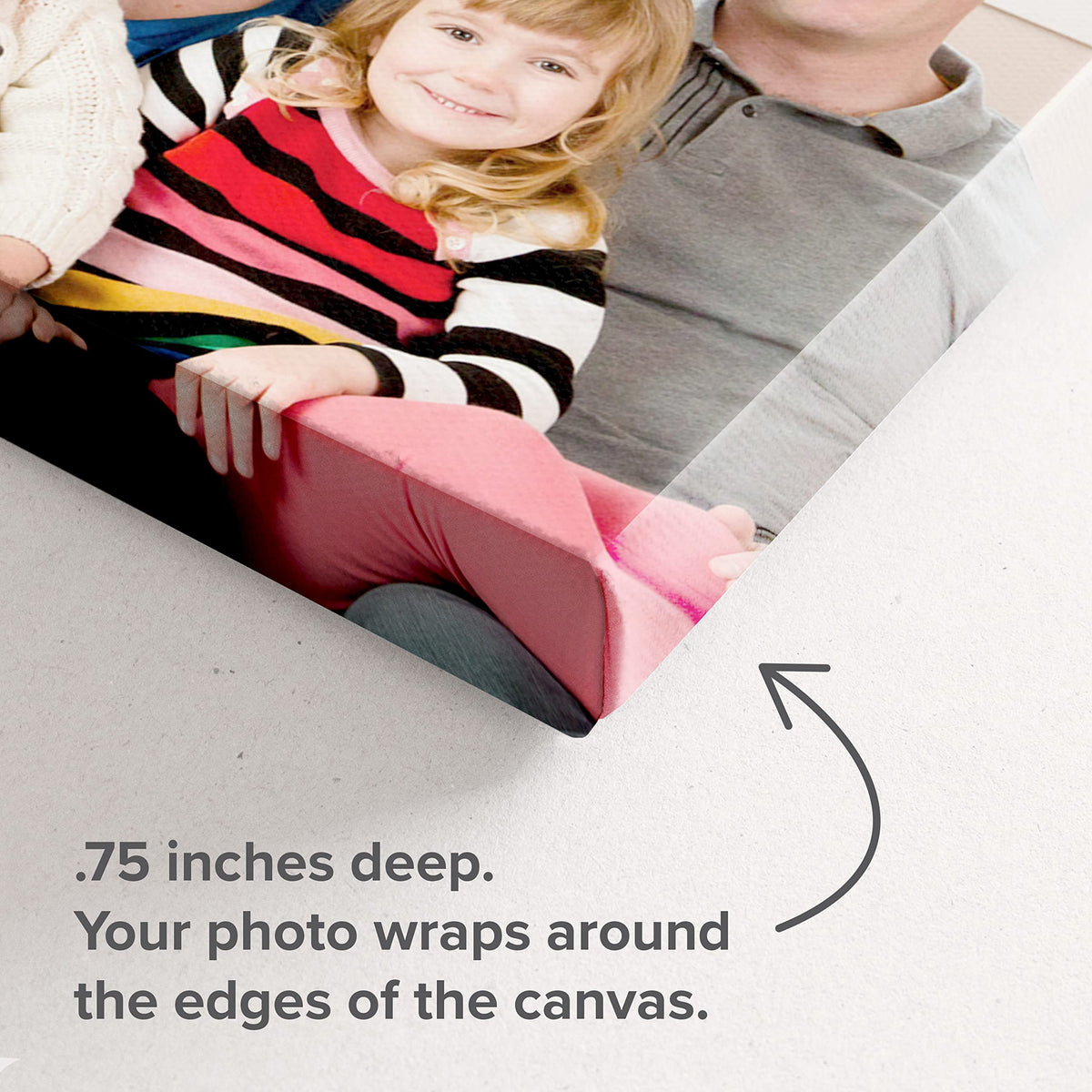 - Q: What is the size of the custom photo canvas? A: The custom photo canvas measures 14 inches by 11 inches and is .75 inches deep.