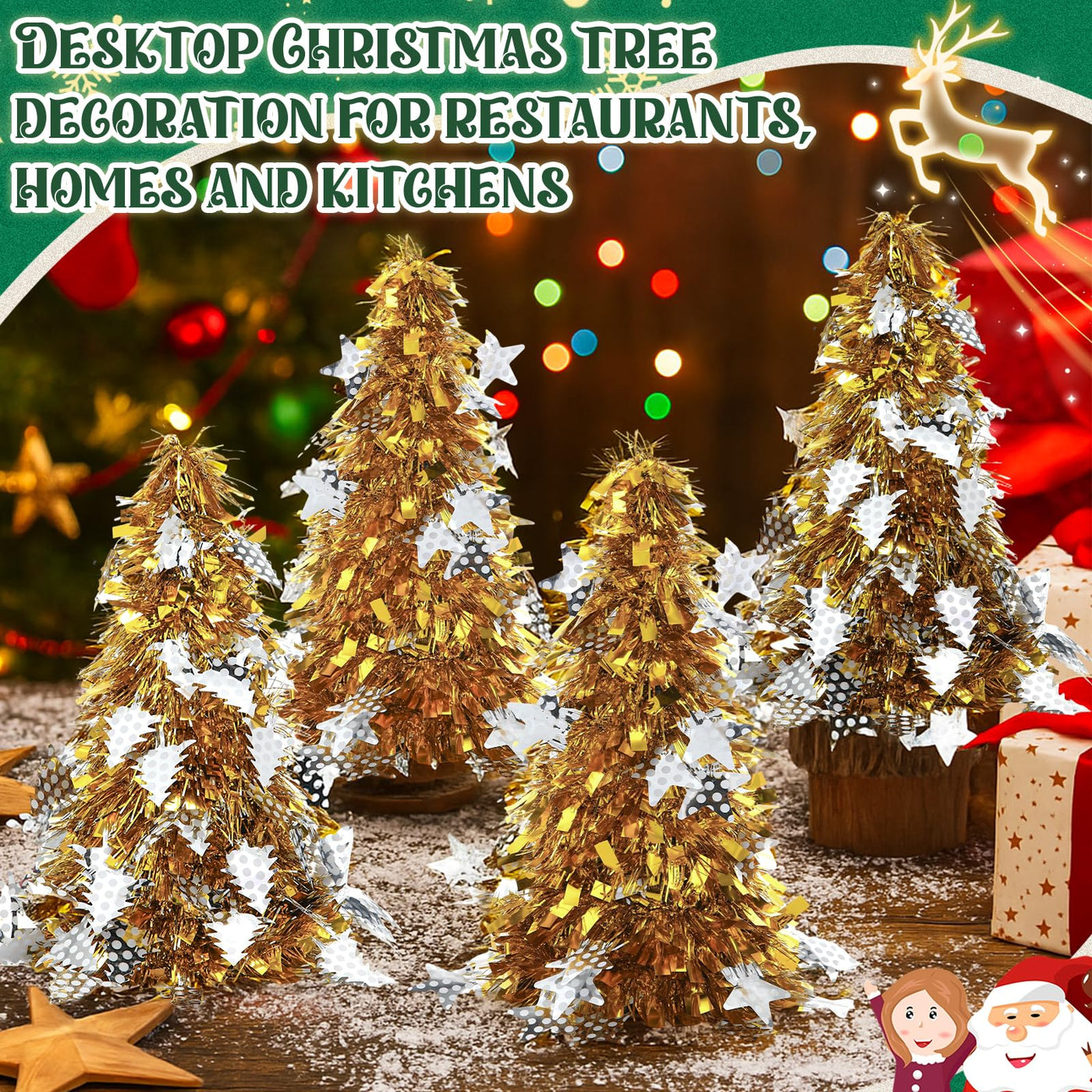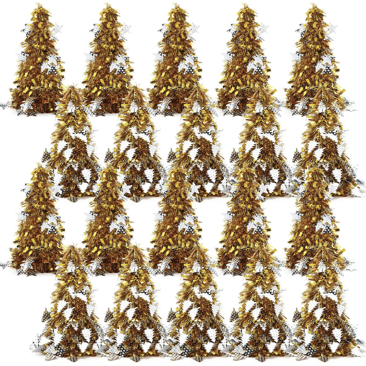 Libima 20 Pcs 10 Inch Mini Tinsel Christmas Tree Artificial Sequins Tabletop Christmas Tree Glitter Metallic Small Xmas Trees Mi