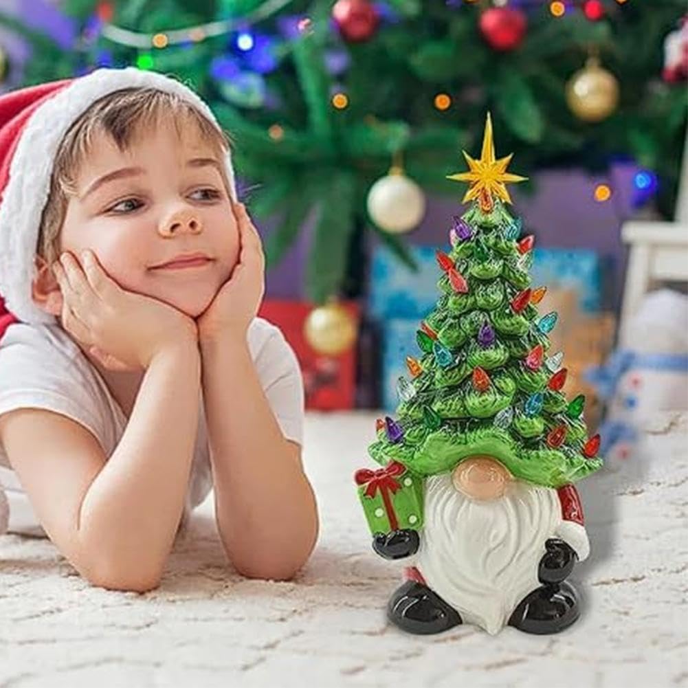 Lighted Christmas Gnomes Decorations, 8 Inch Faceless Old Man Ceramic Christmas Tree, Small Mini Prelit Xmas Holiday Decor for T
