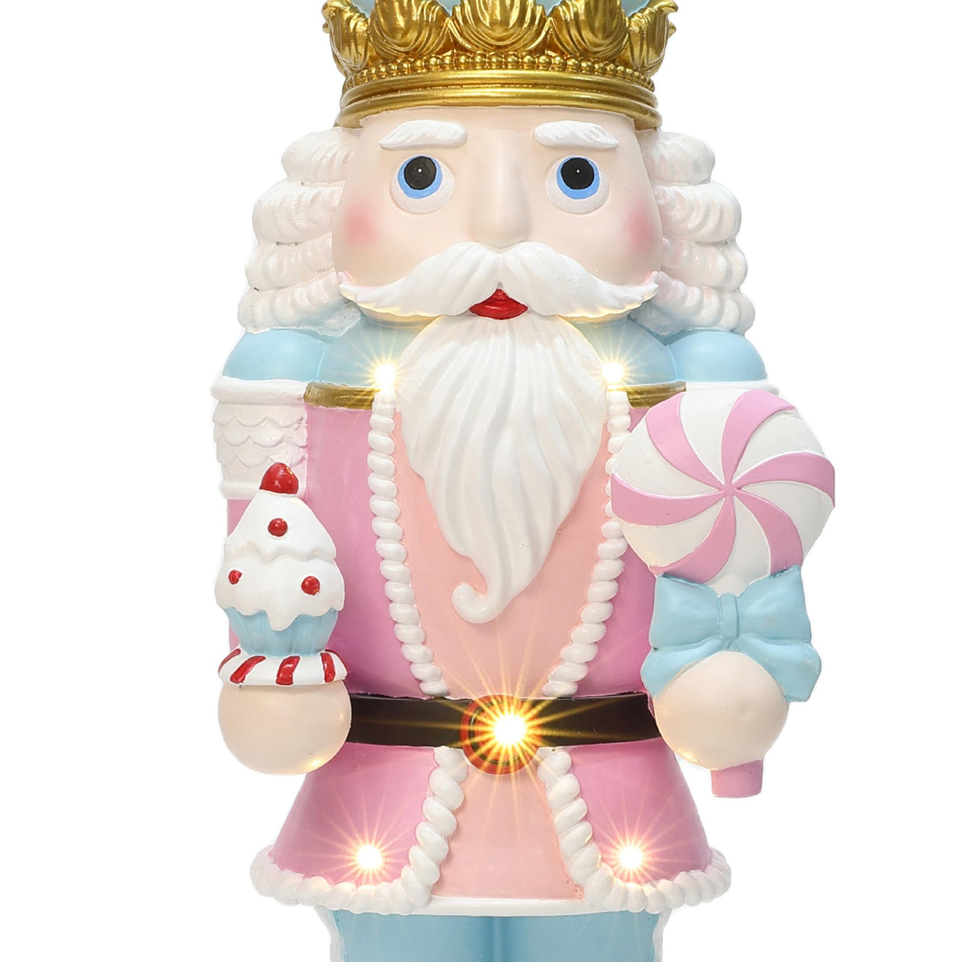 LuxenHome 2FT Tall Nutcracker Christmas Decoration, Candy Land Large Nutcracker Soldier Decoration with Lollipop and Cake, Light
