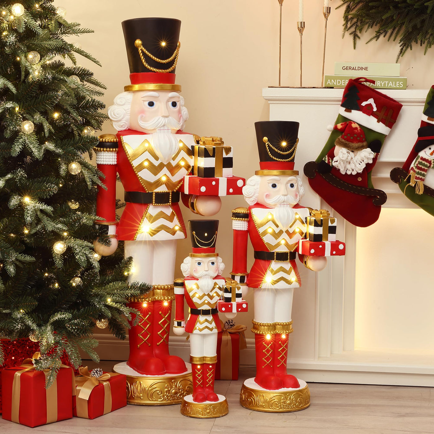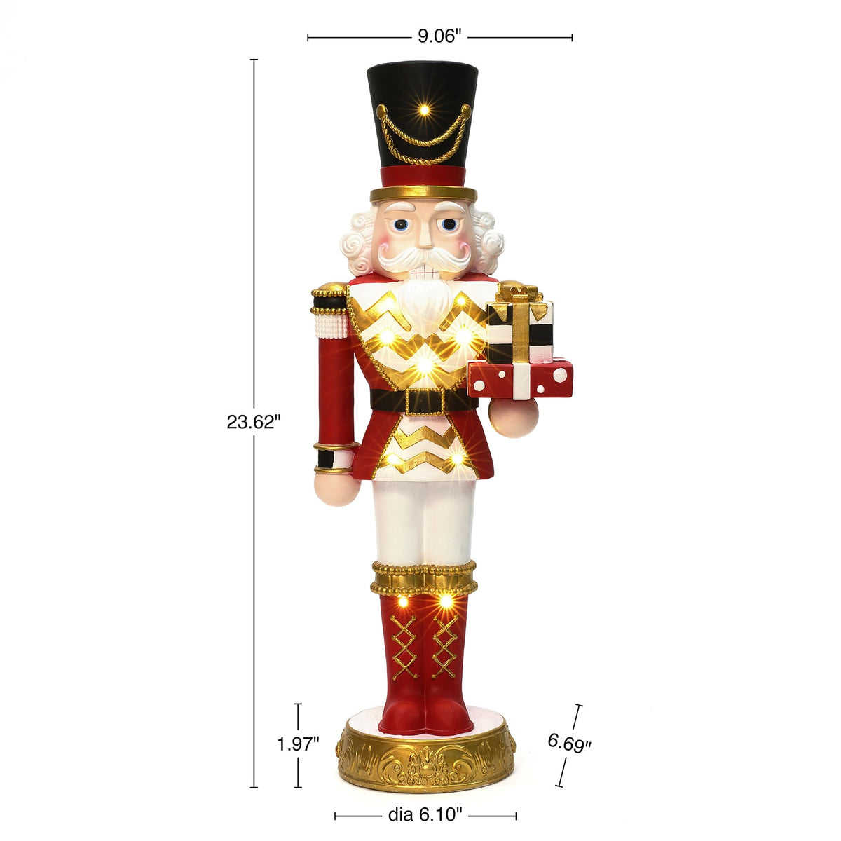 LuxenHome 2FT Tall Nutcracker Christmas Decoration, Large Holiday Nutcracker Soldier Statue with Gift Box, Lighted Figures Chris