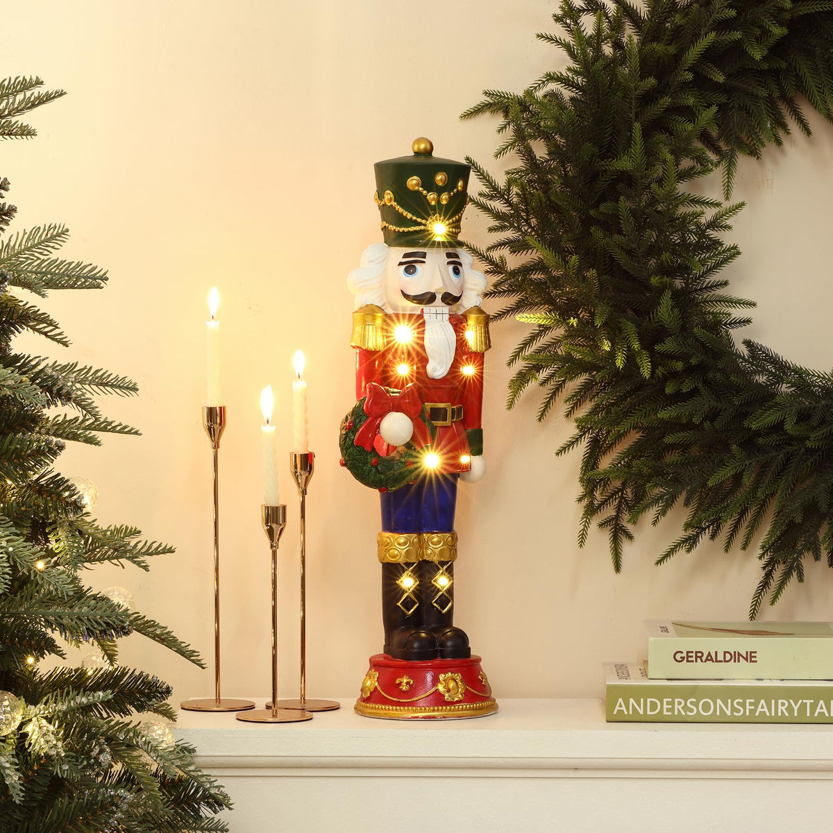 LuxenHome 2FT Tall Nutcracker Christmas Decoration, Lighted Holiday Nutcracker Soldier Statue Festival Wreath, Christmas Decorat