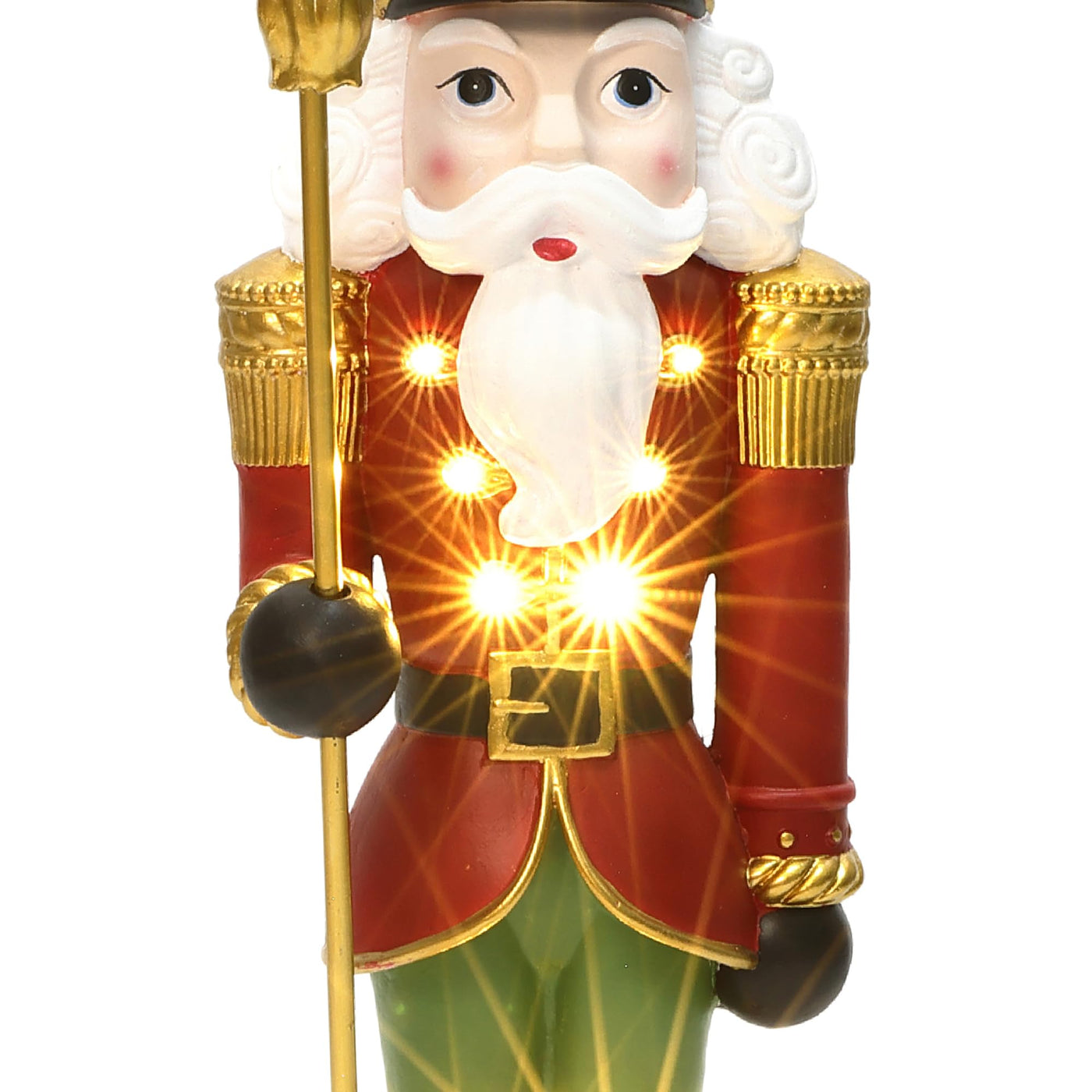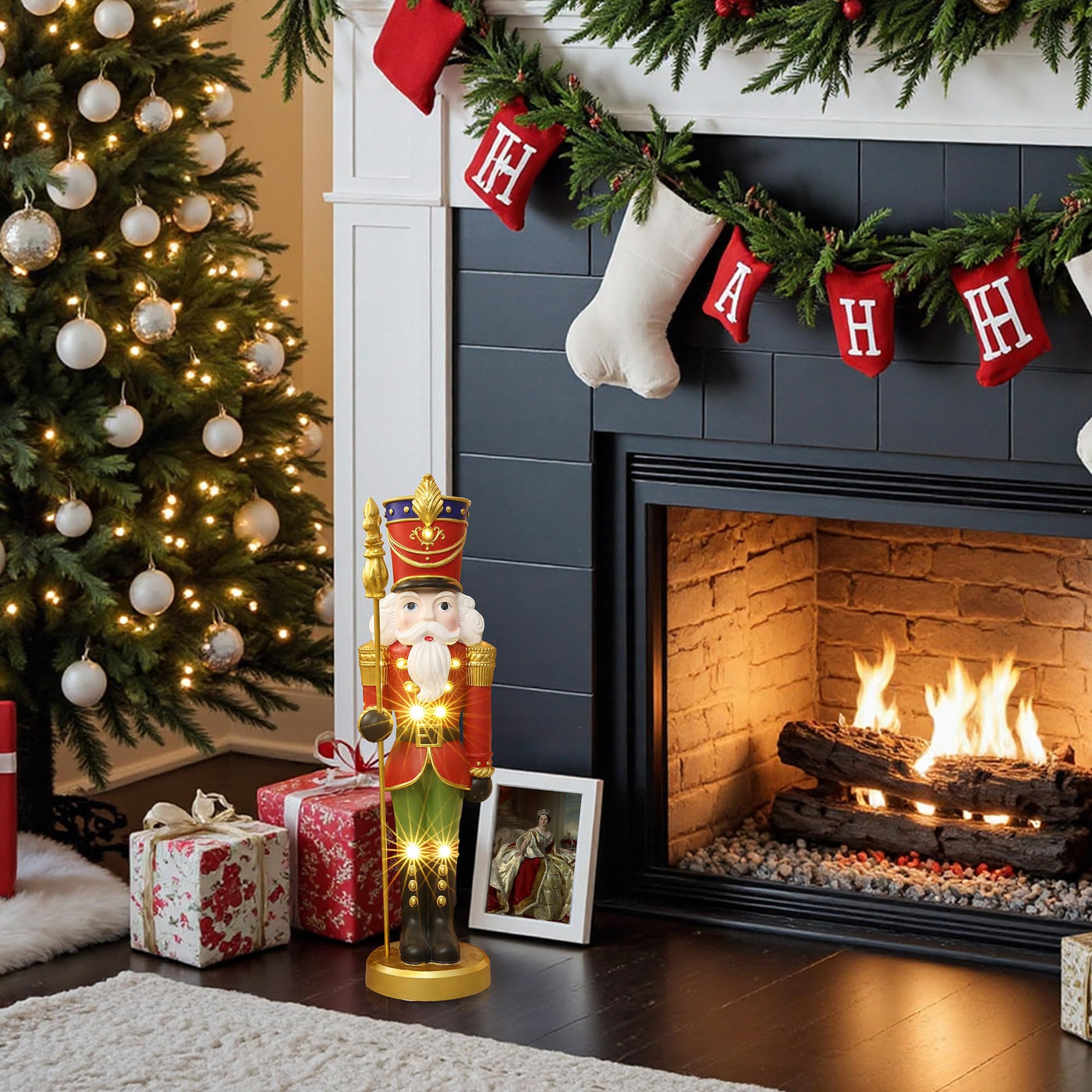 LuxenHome 2FT Tall Nutcracker Christmas Decoration, Lighted Holiday Nutcracker Soldier Statue with Black Belt and Scepter, Chris