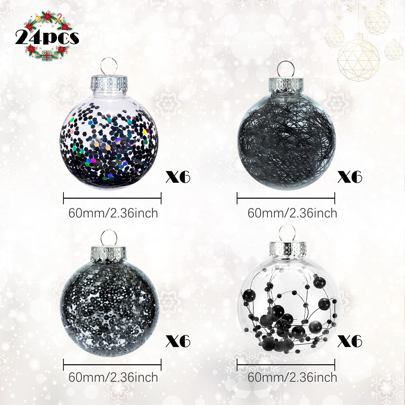 Luxtea 24ct Shatterproof Clear Christmas Ball Ornaments Decorative Xmas Baubles Delicate Balls Decorations (2.36''/60mm,Black)