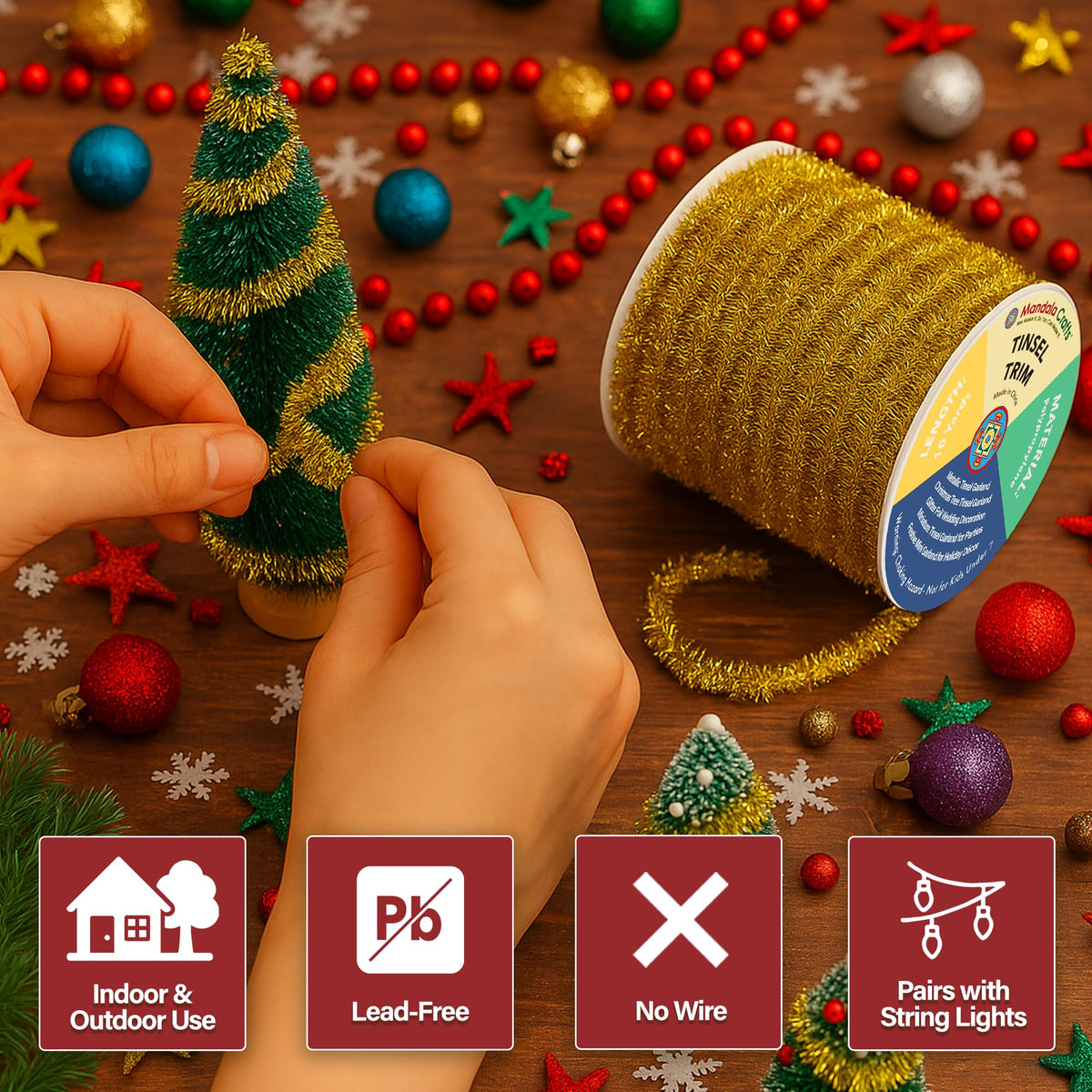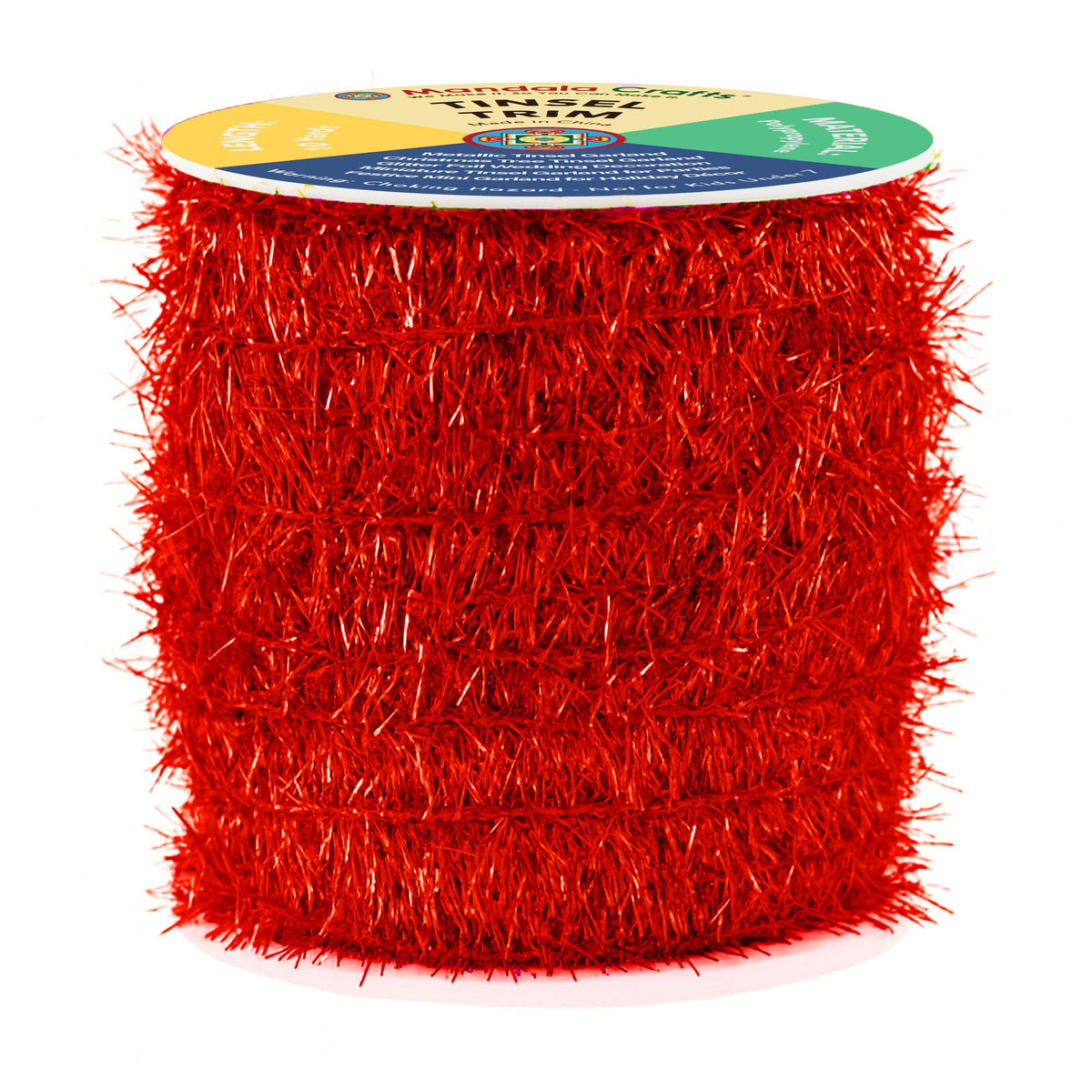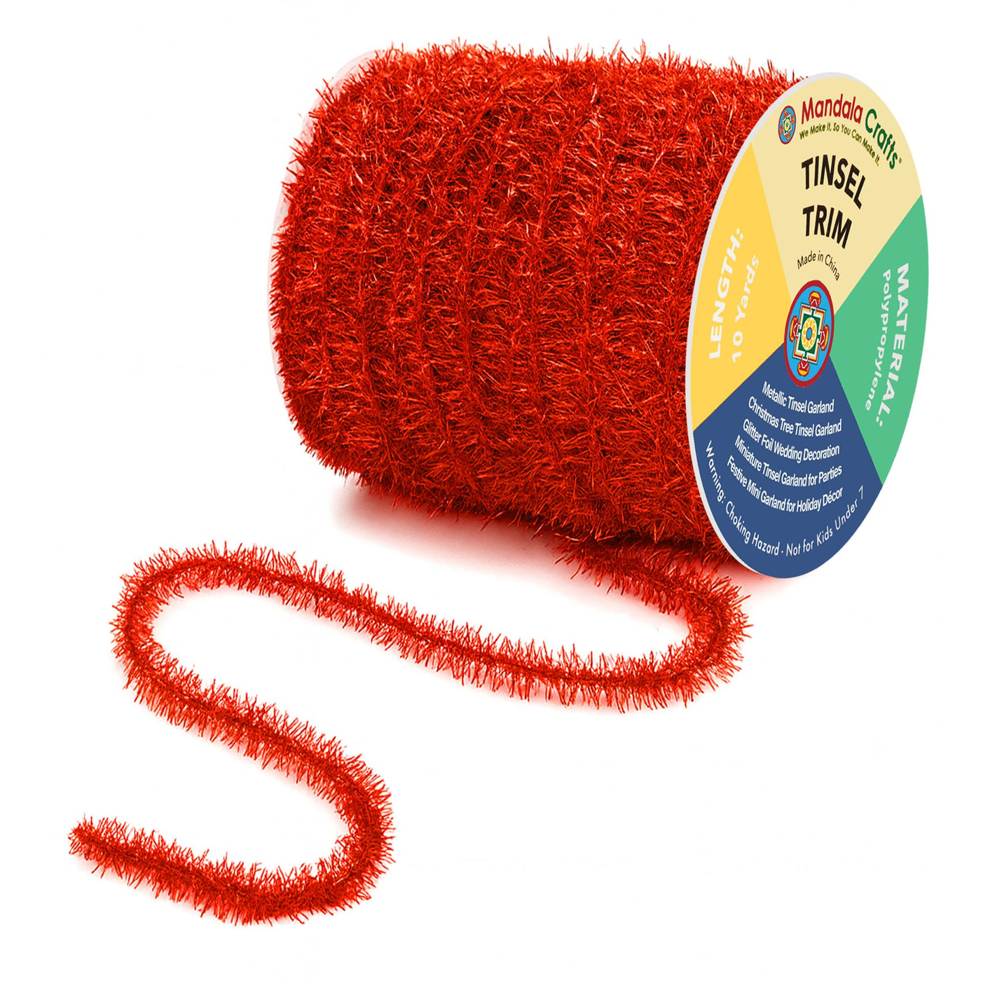 Mandala Crafts Red Tinsel Garland - 30 Feet Thin Metallic Foil Glitter Mini Garland for Christmas Tree, Party, Wedding Decor, an