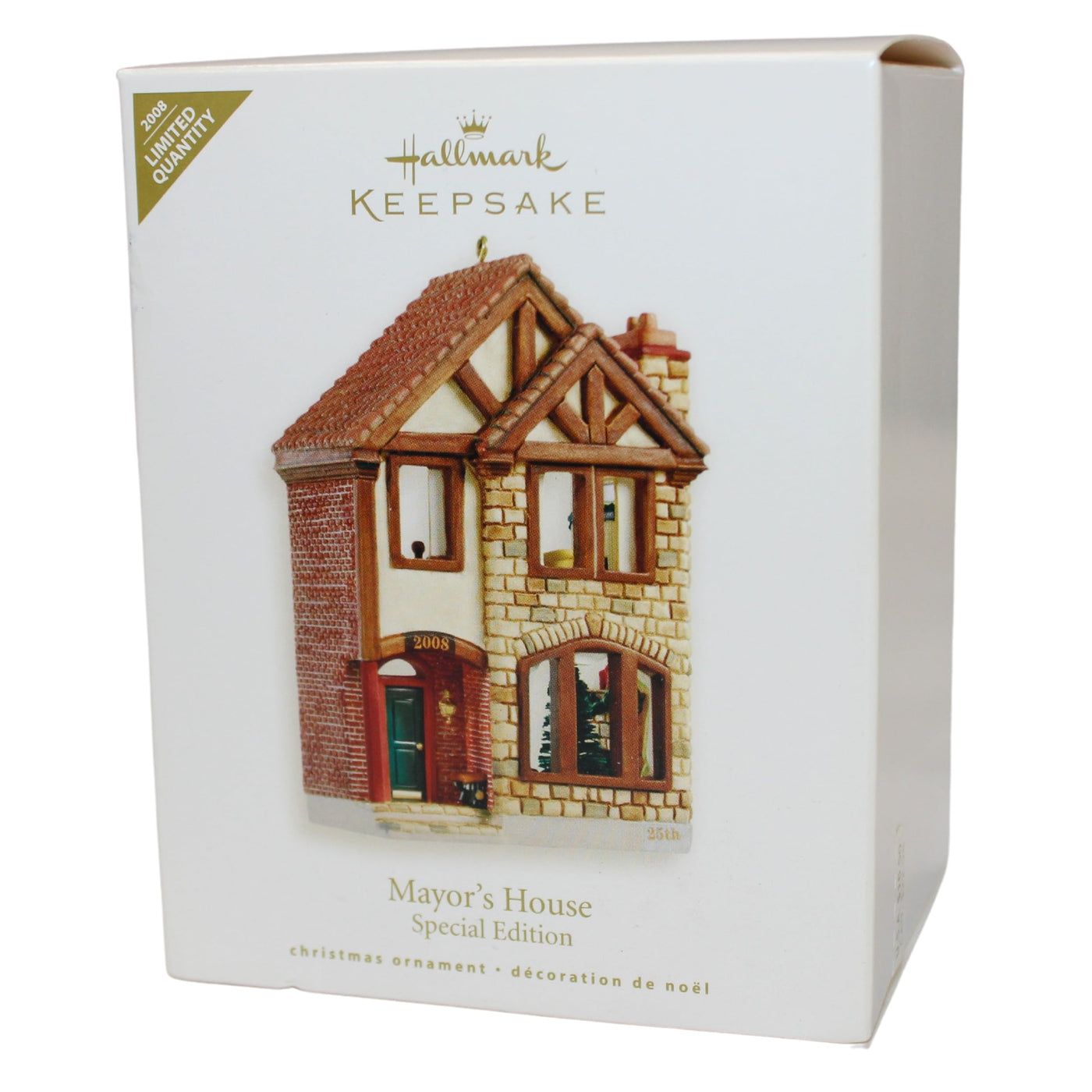 The 2008 Mayor's House Ornament is a stunning addition to any Christmas Tree! This ornament commemorates the 25th anniversary of the Nostalgic Houses and Shops series, and it's a real beauty. It's a Tudor-style house, with lovely details that will make you nostalgic for simpler times. It would make a great addition to your collection, or a wonderful gift for someone special. Order yours today! Hallmark first started crafting their ornaments in 1973. Over the past 50 years theyve become a celebrated tradition for everyone from collectors to everyday Christmas tree decorators. Snag the 2008 Mayor's House ornament today-Its sure to bring joy to your home this Holiday Season!