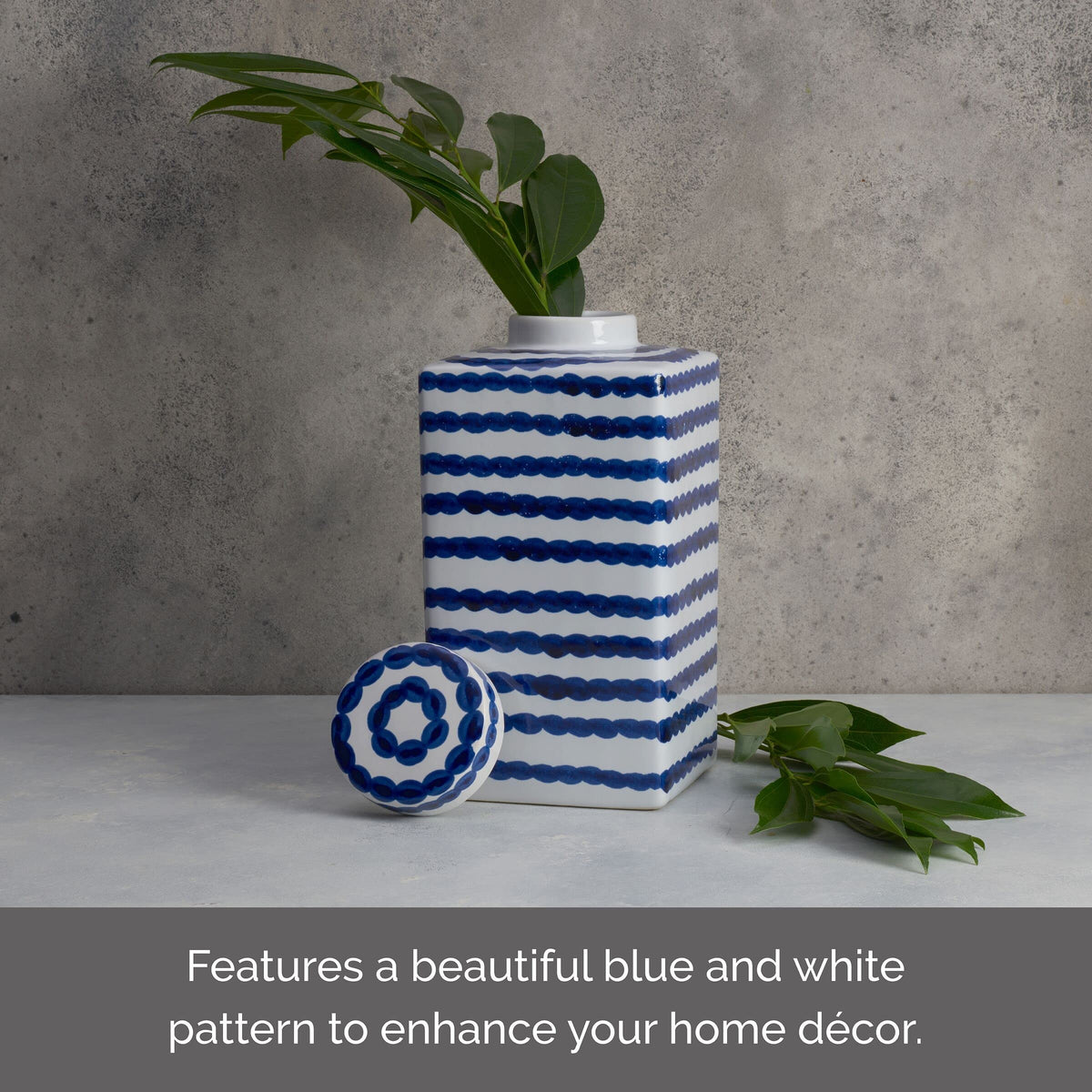 Mikasa Blue and White Paint Stroke Square Ceramic Ginger Jar, Store Small Household Items or Display Faux Florals