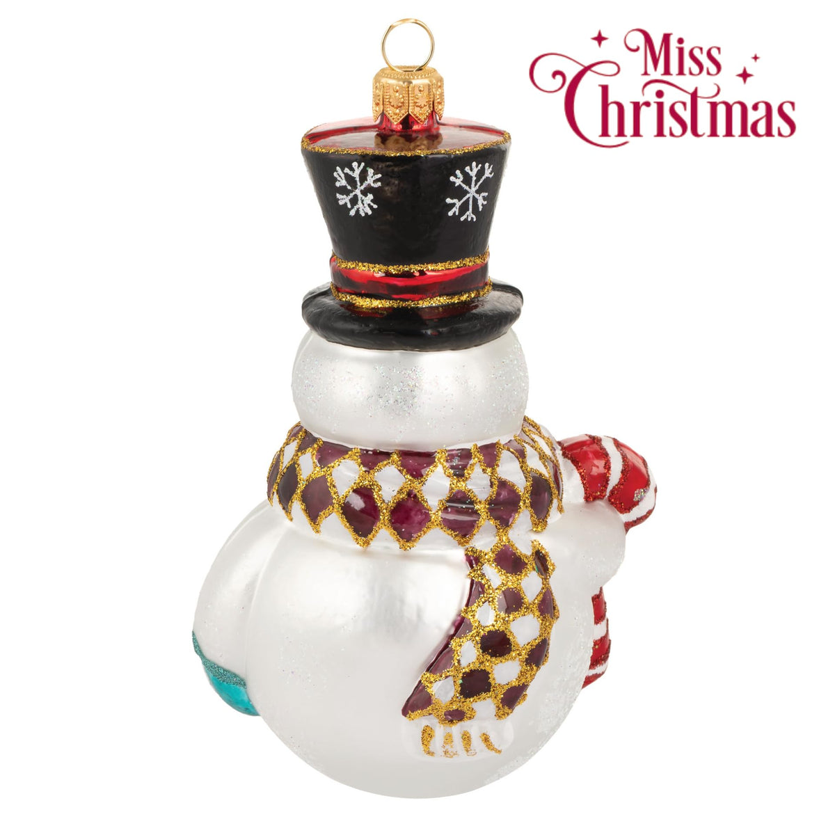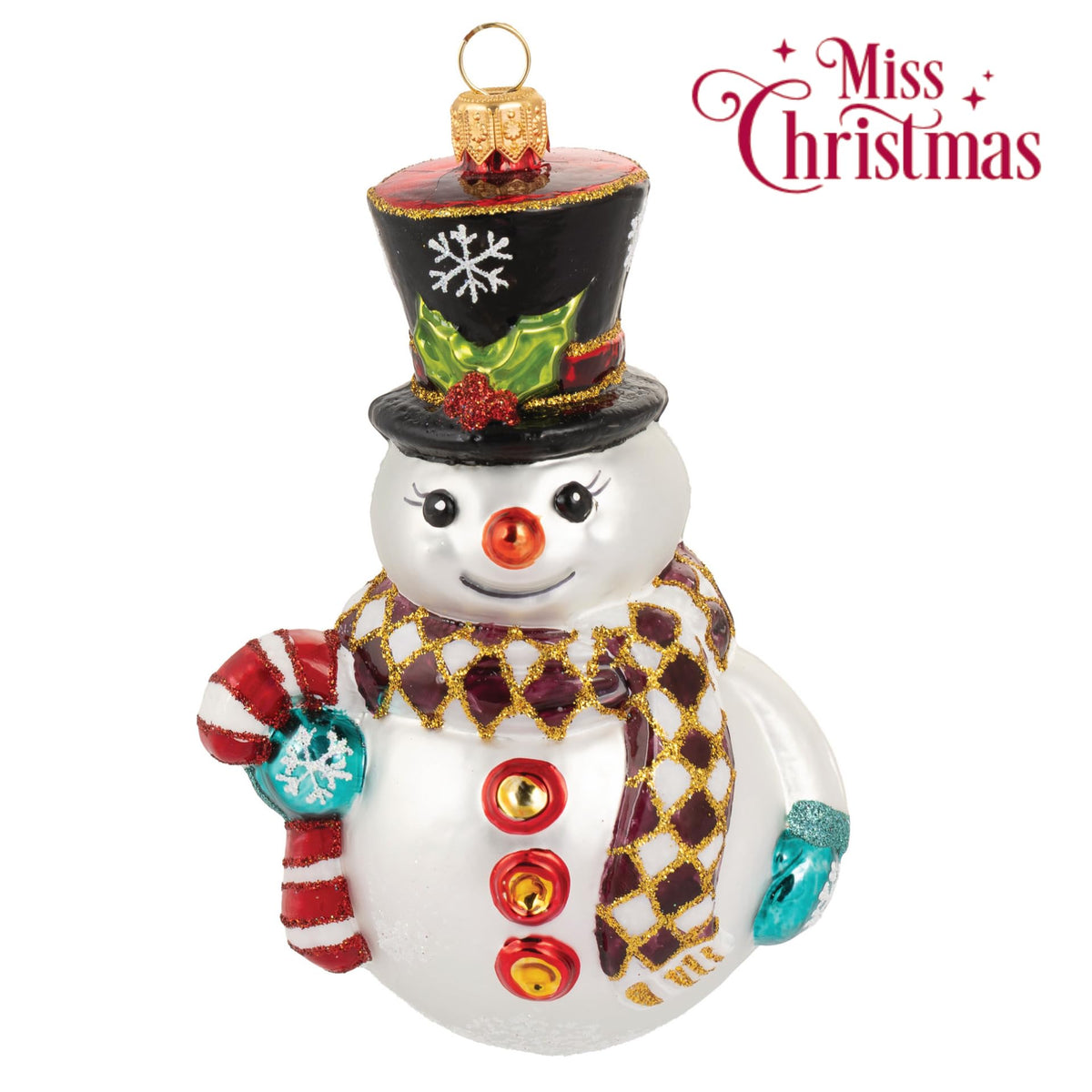 Miss Christmas 2025 Collection Fancy Snowman Blown Glass Christmas Tree Ornament (Merry Mister Frosty)