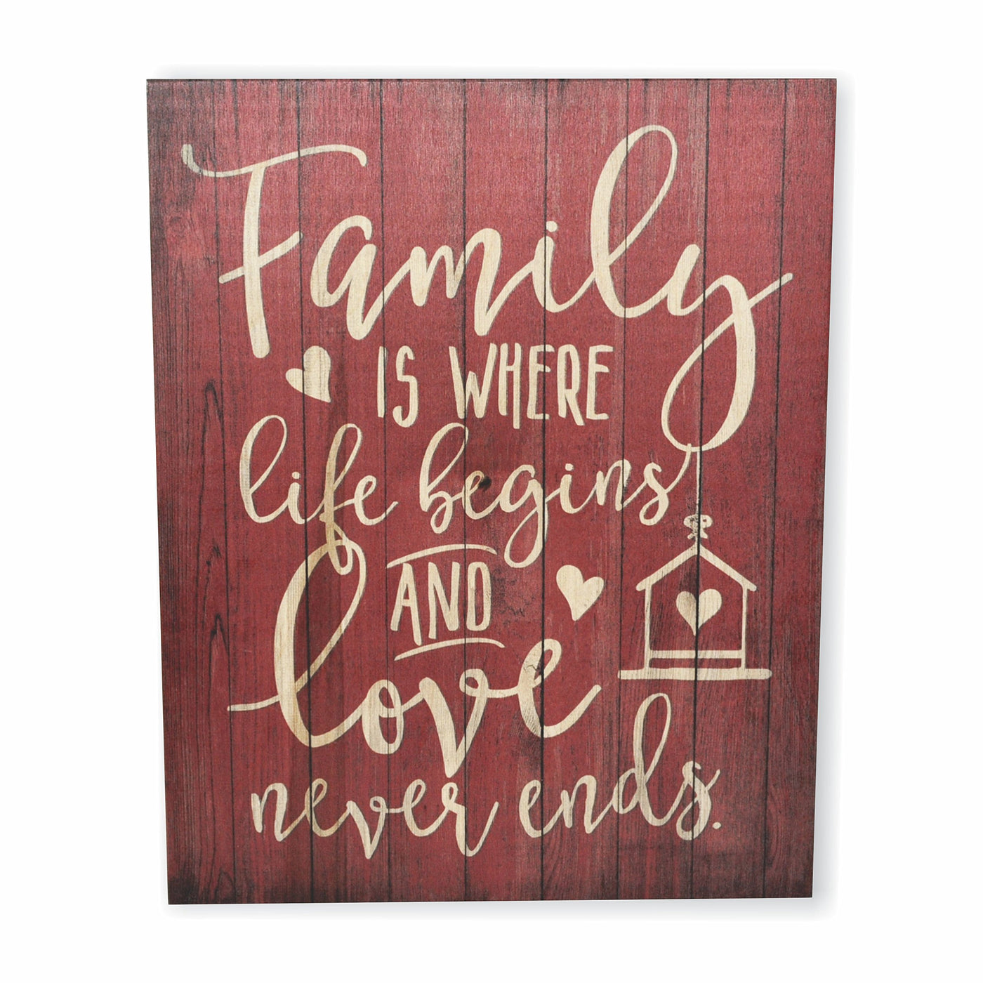 MRC Wood Products Family is Where Life Begins and Love Never Ends Rustic Wall Sign 12x15