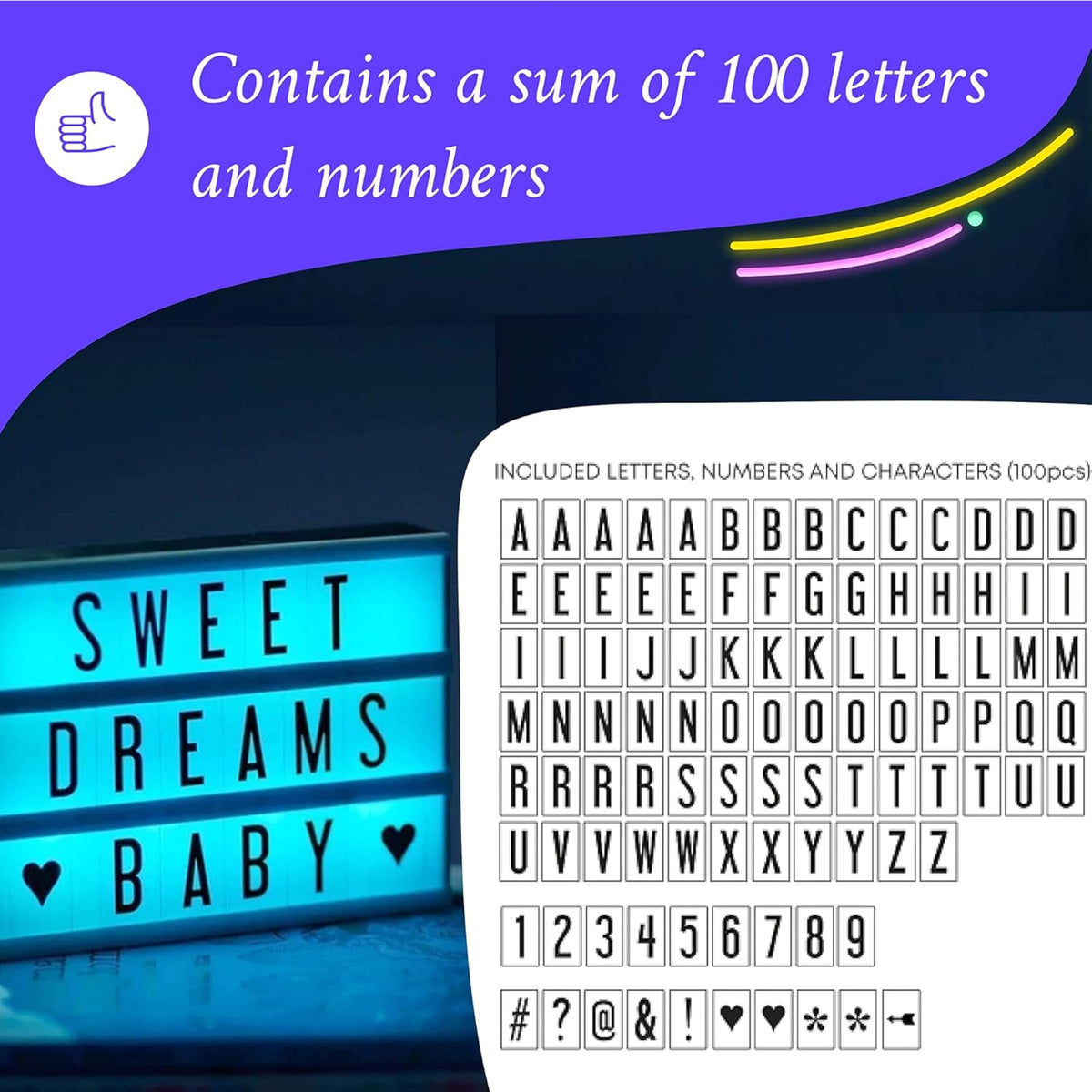 My Cinema Lightbox - Mini Cinema Lightbox, 8x6 - Personalized Light Box Sign with 100 Letters, Numbers, & Symbols, USB cable inc