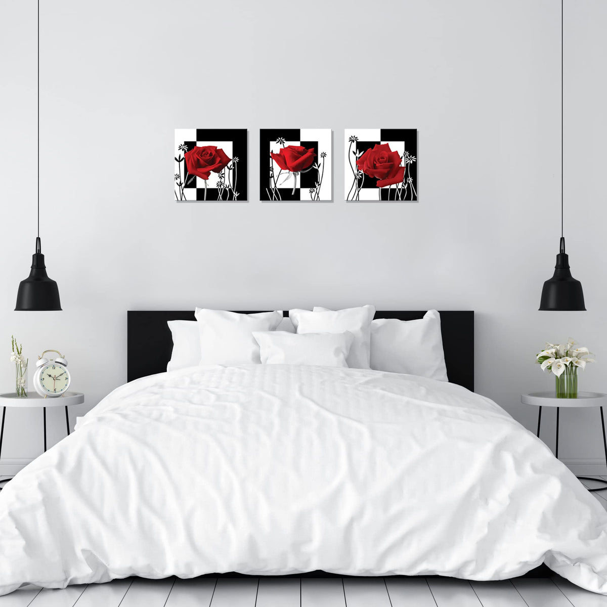 Nan Wind 3 Pc Red Rose Wall Decor Black And White Red Rose Pictures For Wall Canvas Art Red Bedroom Decor Red Wall Art Flower Pi