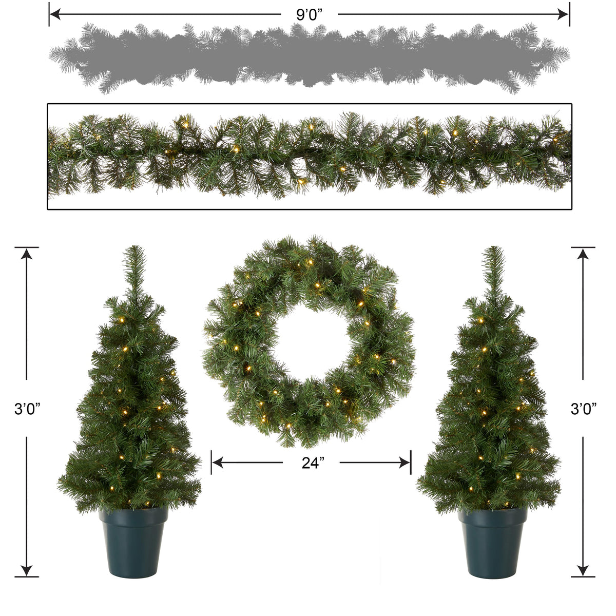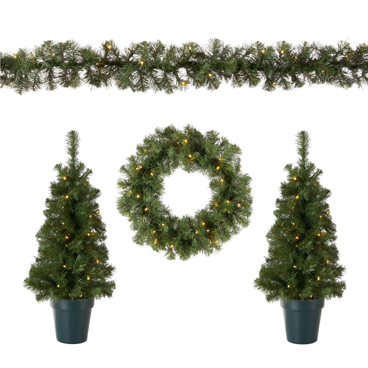 National Tree Company Pre-Lit Evergreen Collection Artificial Christmas Decoration Set, Includes 2 Mini Entrance Trees, 1 Garlan