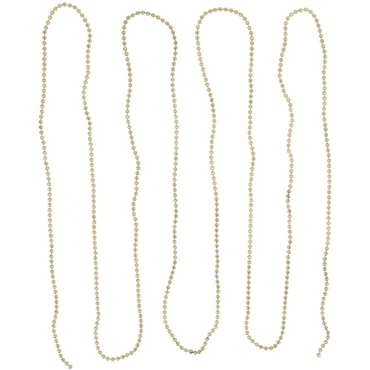 Tree trimming has been a staple of Christmas traditions for centuries. Keep your holiday decor traditional this year with this gold lame beaded garland on a matching string. Use this garland to add a little or a lot of character to your tree wreath mantle or stairway. Product Features: Beaded Christmas garland The garland has gold lame beads Features the beads on a matching string Lame creates a unique distressed texture Durable shatterproof material Perfect for indoor and outdoor use Dimensions: 15' long x . 25 diameter Material(s): plastic