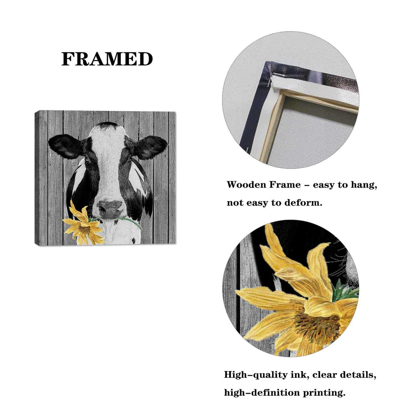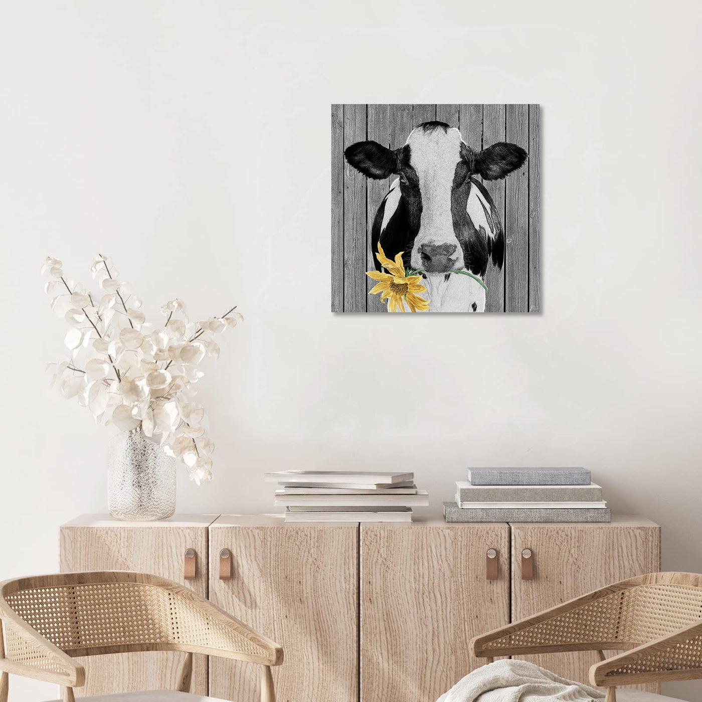 Nteumm Holstein Cow Canvas Wall Art Decor Black And White Country Farmhouse Kitchen Bathroom Rustic Retro Picture Modern Home Be