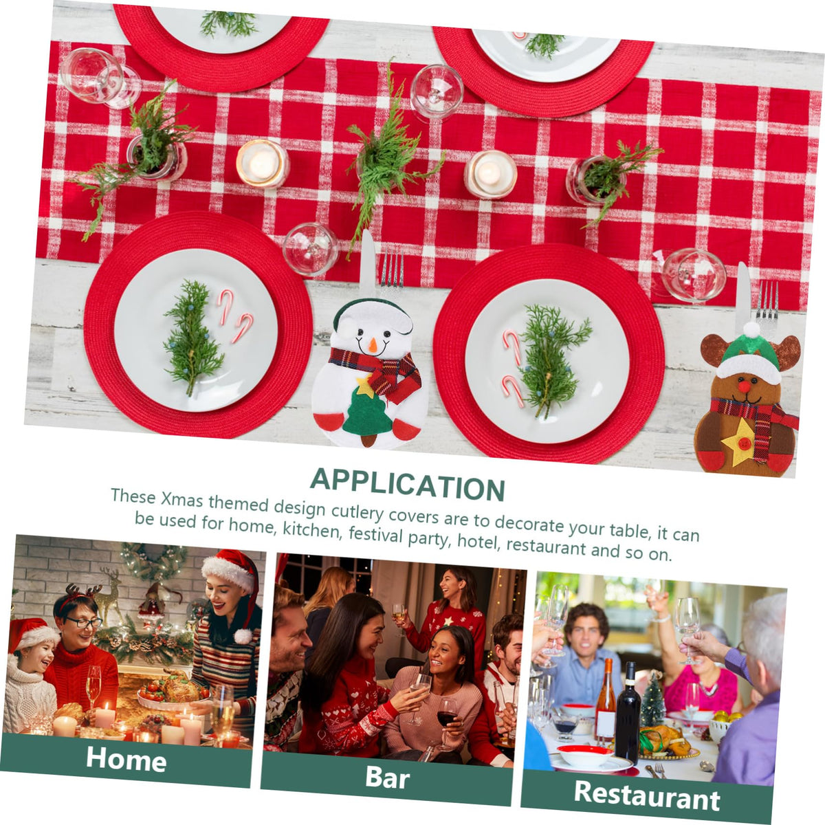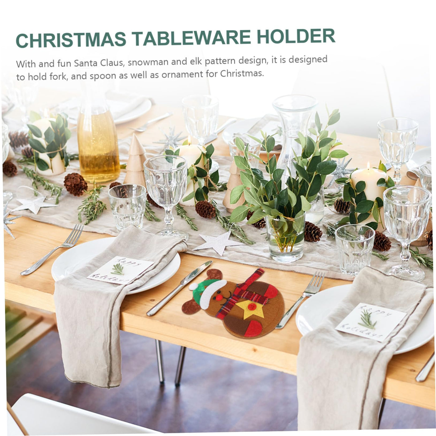 OULII 6pcs Christmas Cutlery Holder Snowman Reindeer Santa Claus Silverware Holders Pockets