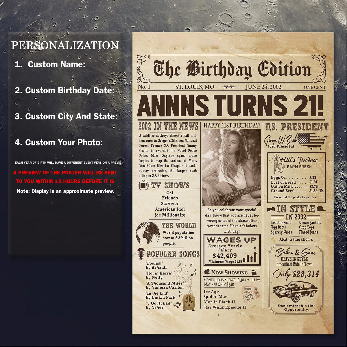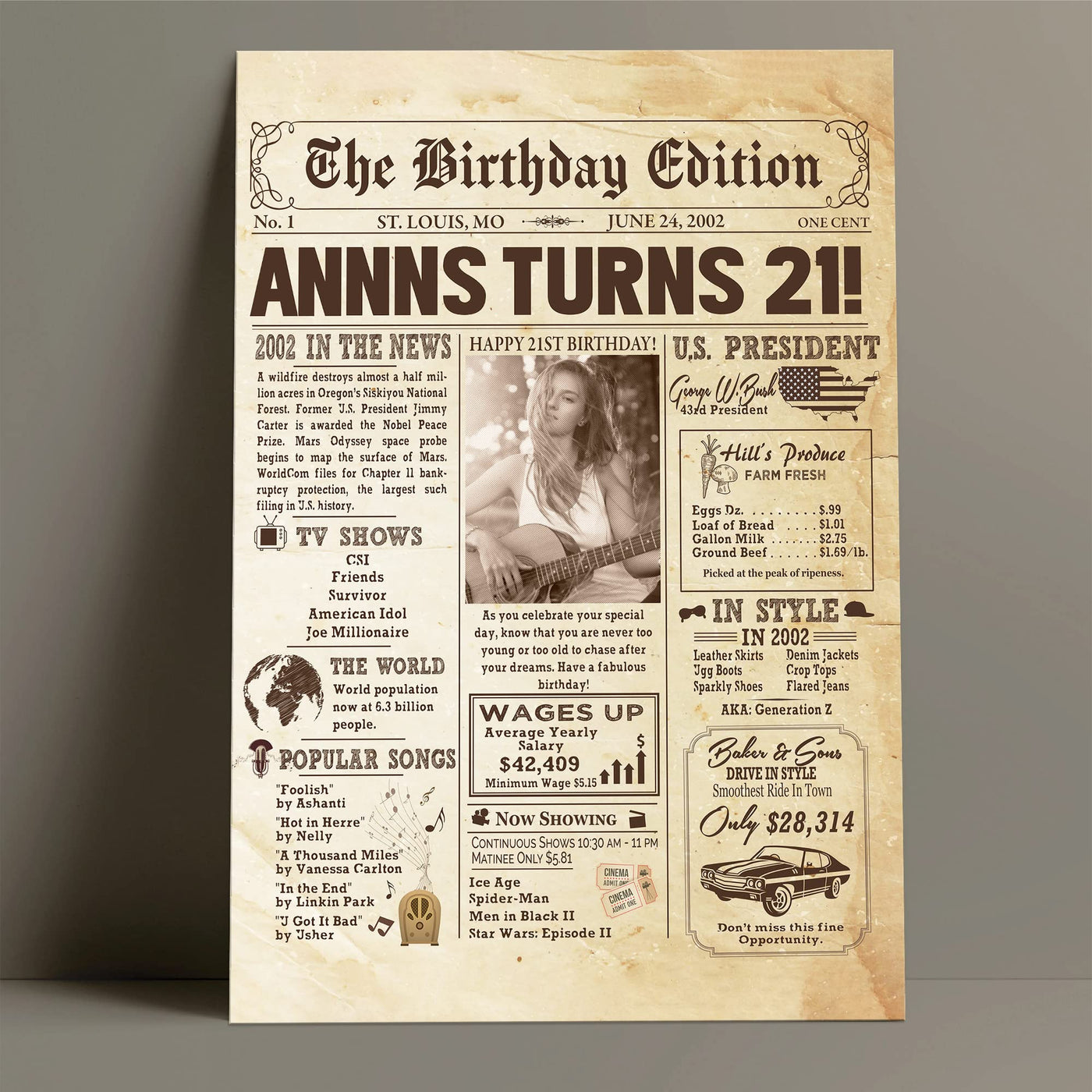 Personalized 21St Birthday Newspaper Poster No Frame, Canvas Back In 2002 Gifts Idea Birthday, Anniversary, Custom Photo Birthda