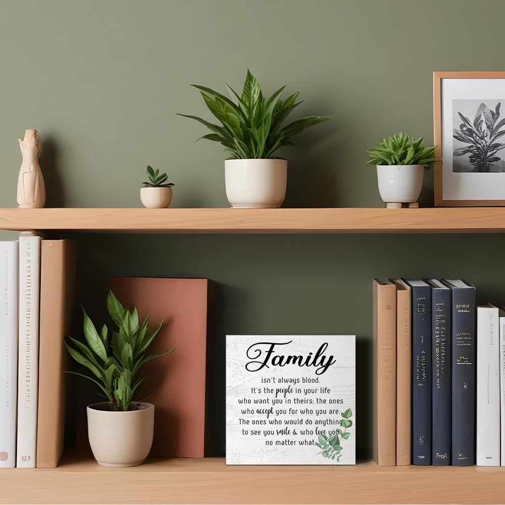 PUVOXHO Family isn't Always Blood it's The People in Your Life Wooden Sign Desk Decor, for Home Farmhouse Bedroom Office Social