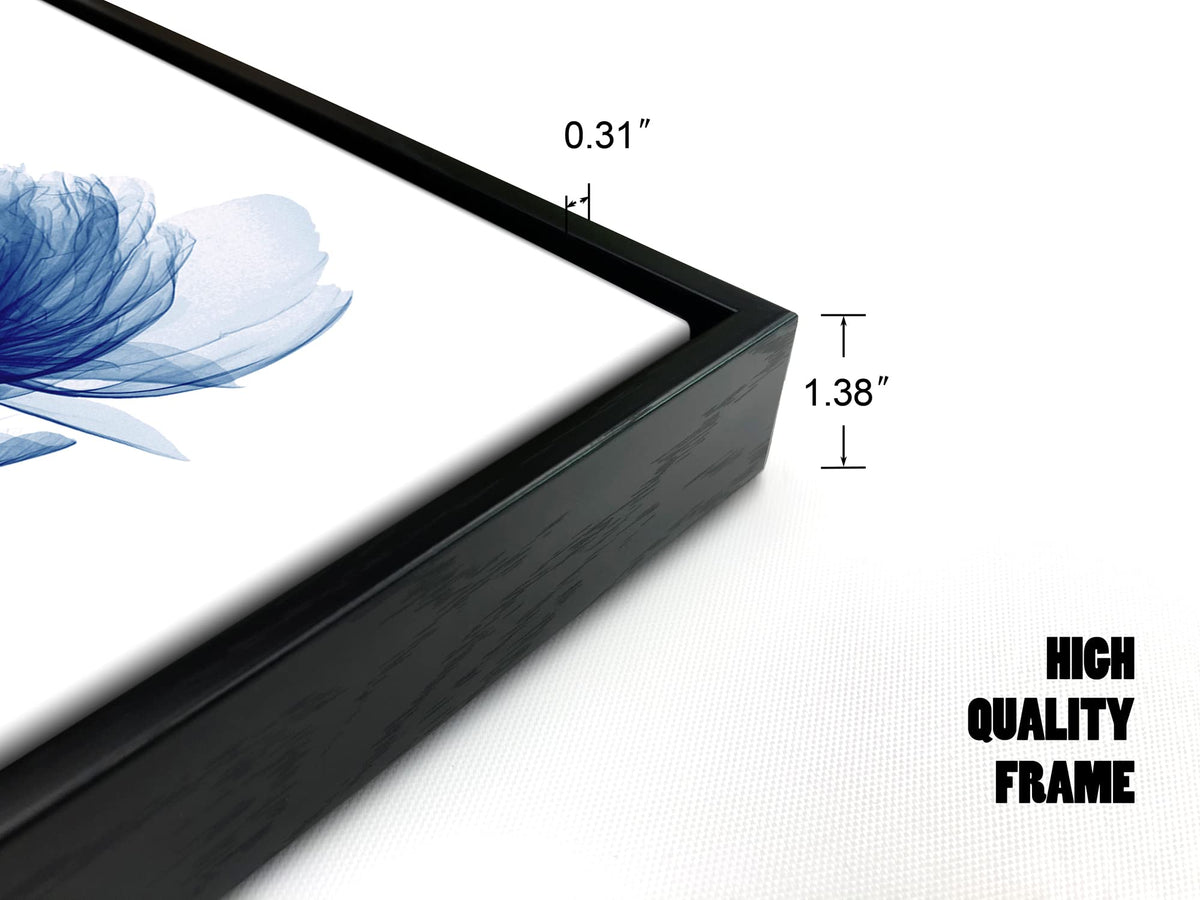 Pyradecor Black Framed One Panel Blue Flickering Flower Modern Paintings Canvas Wall Art Grace Floral Pictures On Canvas Prints