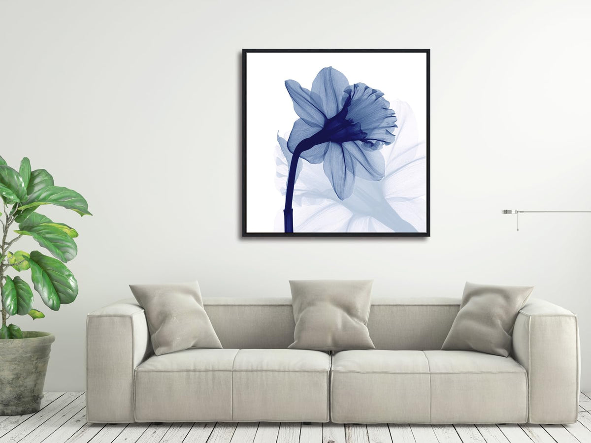 - Q: What type of artwork does this product feature? A: This product features high definition modern artwork with vivid colors printed on thick quality canvas, depicting blue flickering flowers.