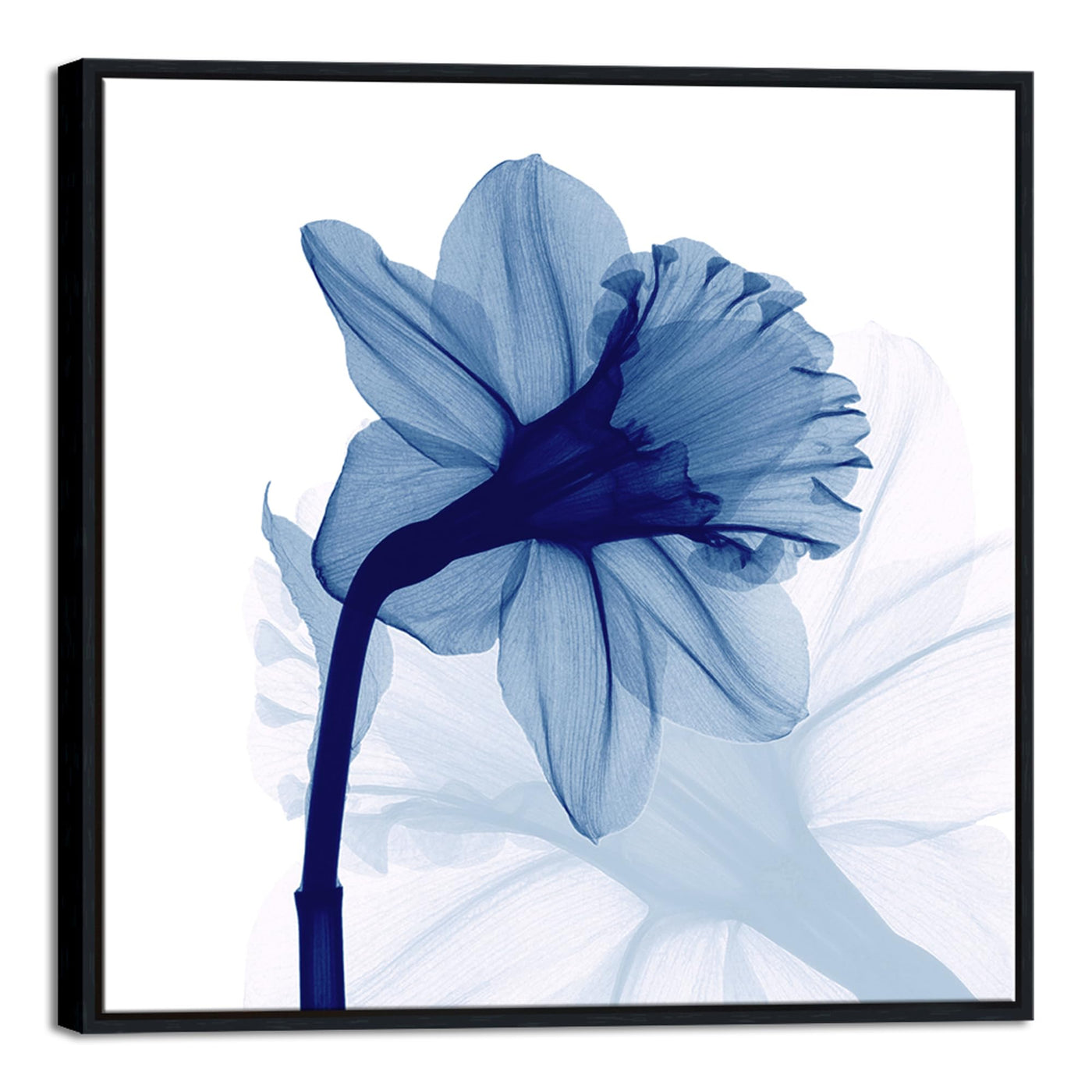 Pyradecor Large Black Framed One Panel Blue Flickering Flower Modern Paintings Canvas Wall Art Grace Floral Pictures On Canvas P
