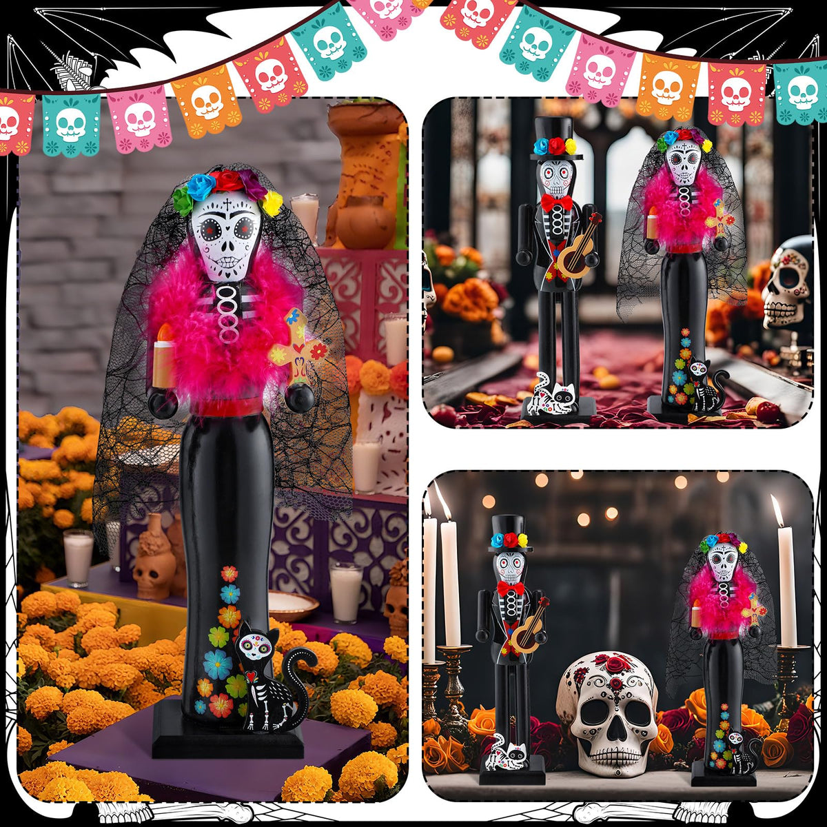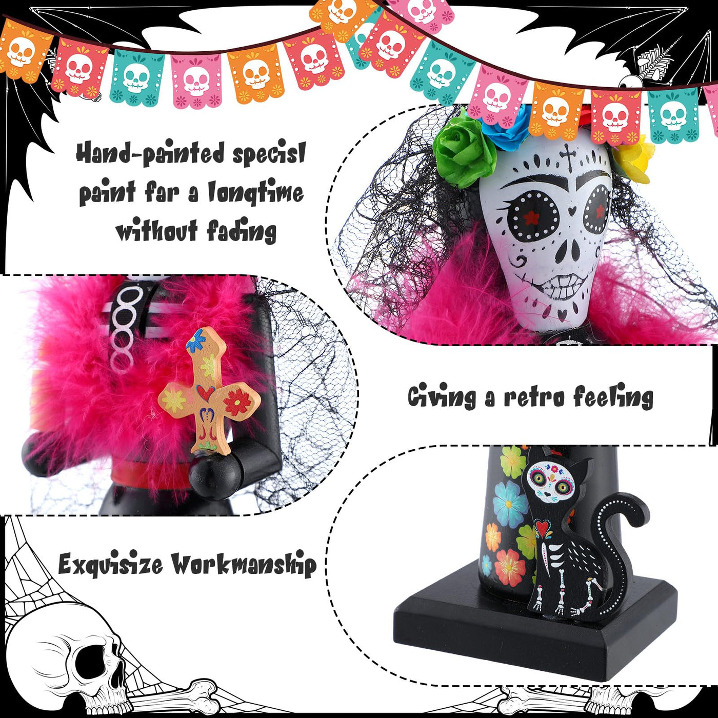 RattanView 2 Pcs Halloween Nutcracker 14 Inch Wooden Witch Black Cat Nutcracker Figures Party Decor for Halloween Holiday Tables