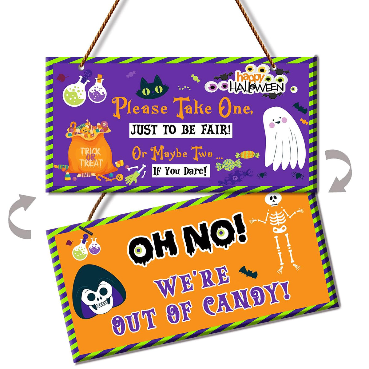 Reversible Halloween Take One/Out of Candy Unattended Candy Bowl Sign, Double-sided Print Durable Hanging PVC Signage for Trick