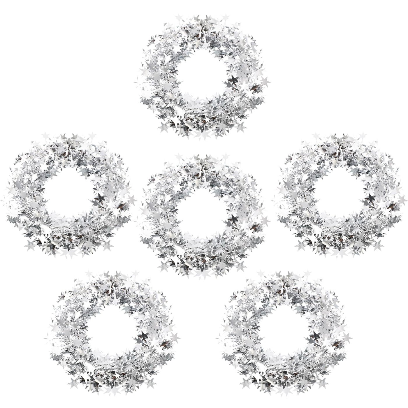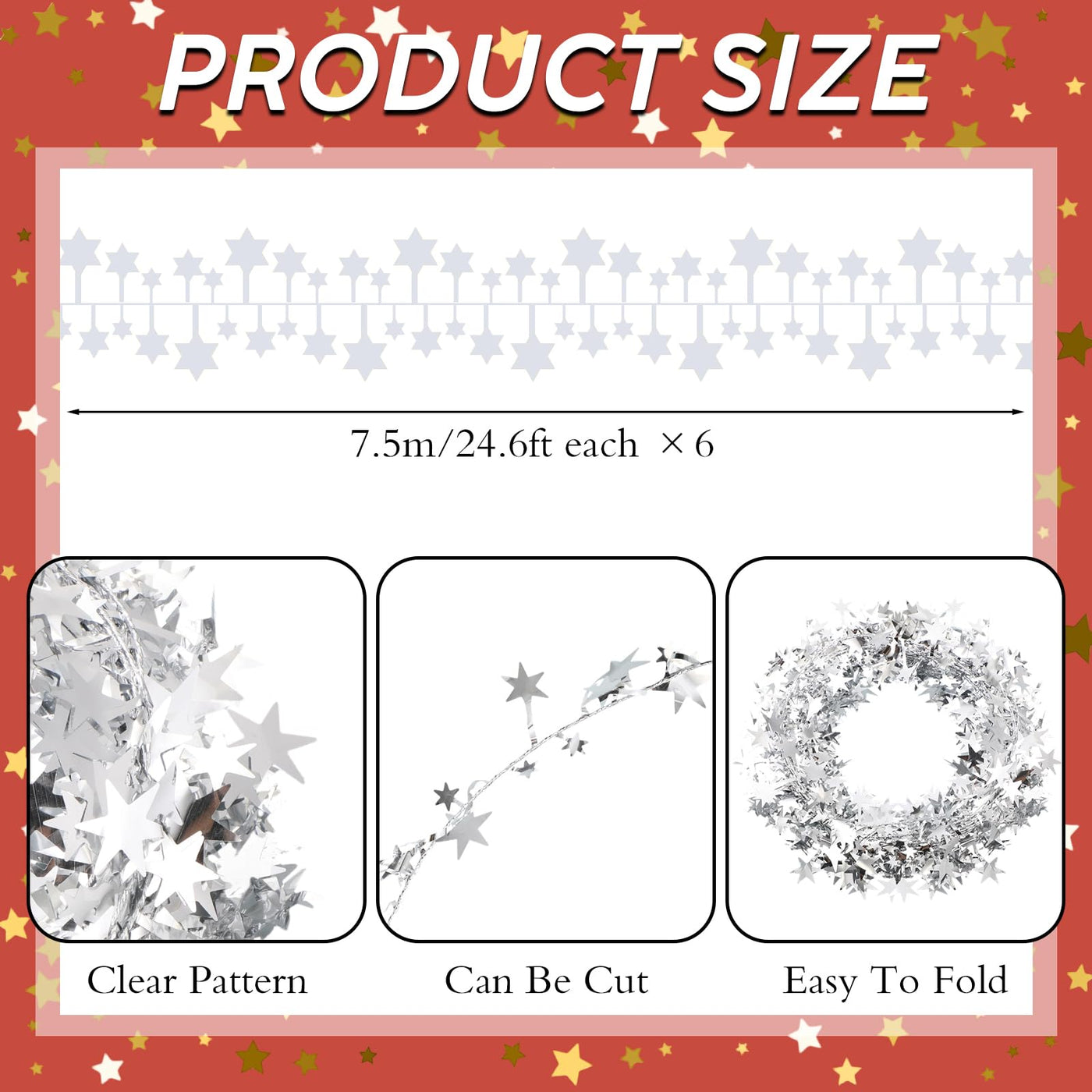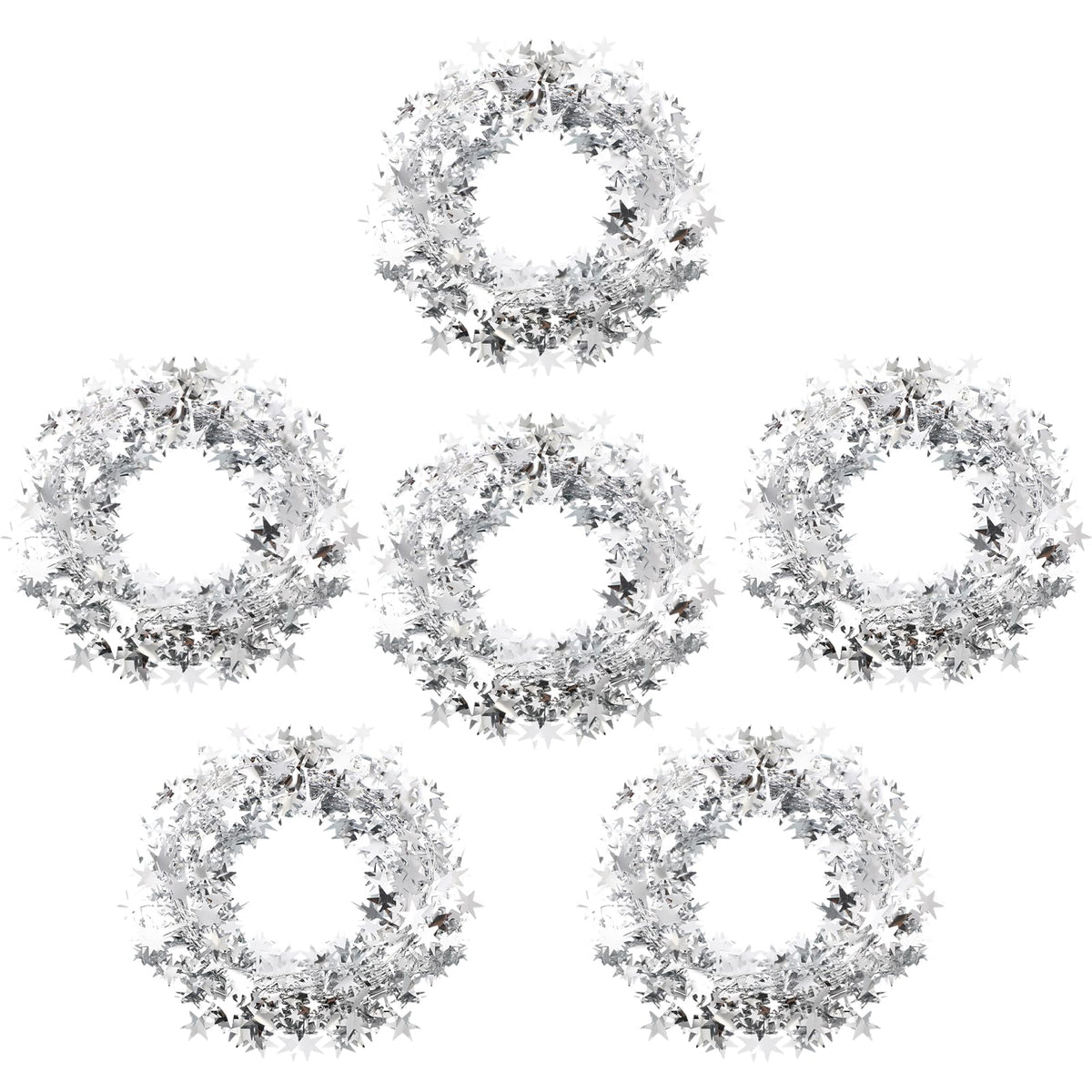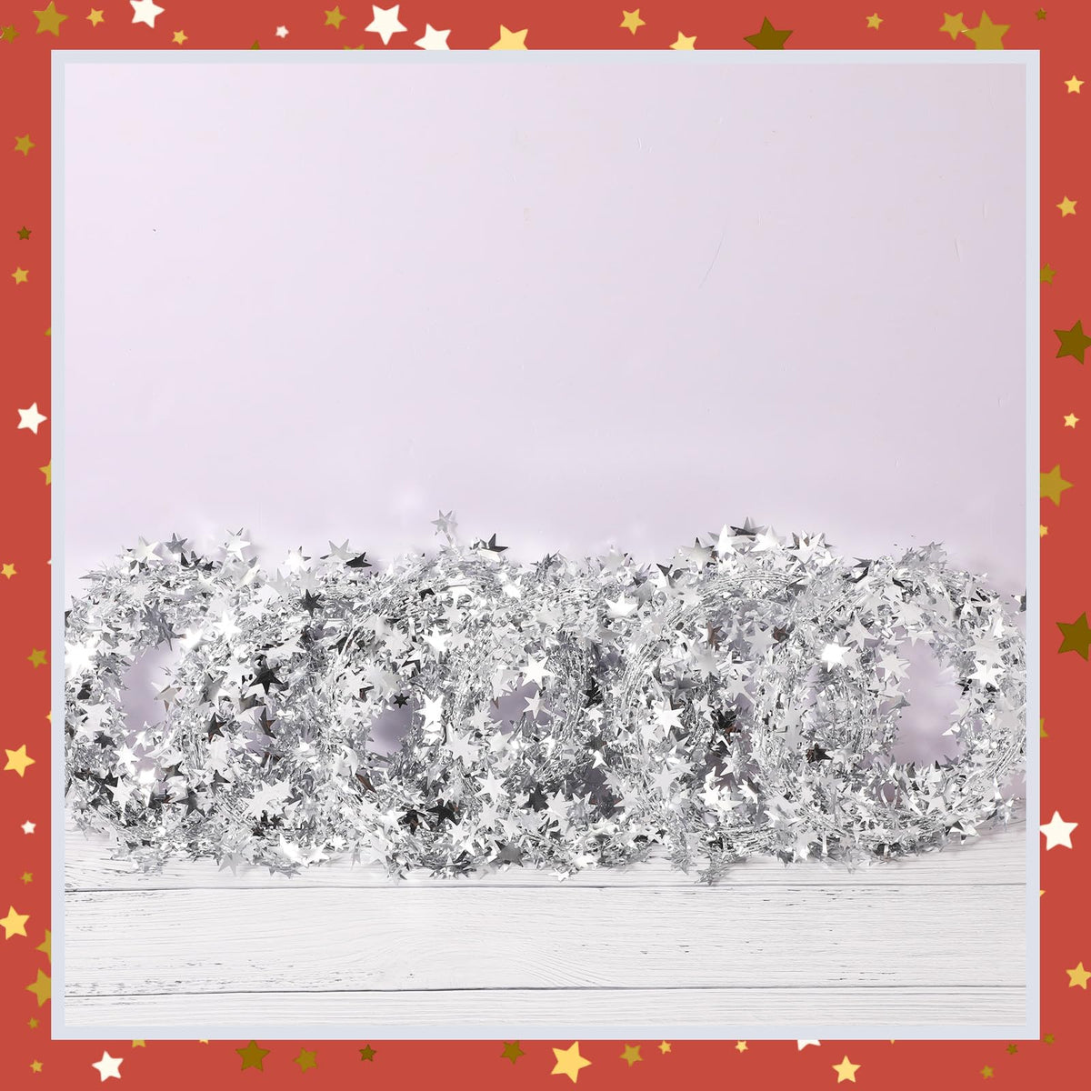 Shappy 147.6 ft Star Garland Wired Silver Christmas Tinsel Garland for Tree Metallic Small Mini, 6 Rolls for Decorations