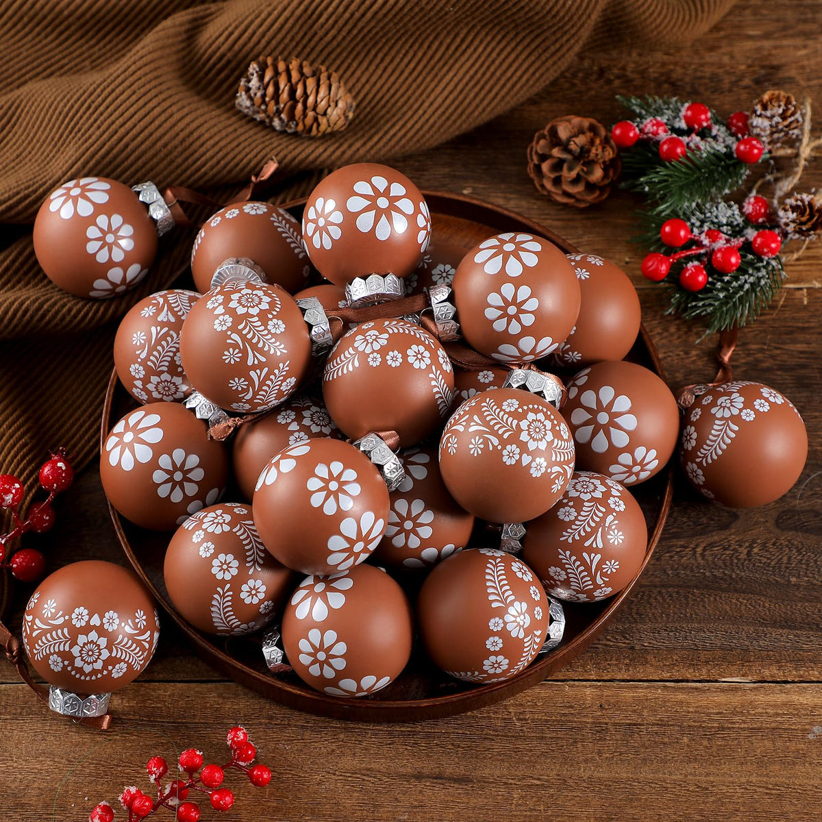 ShinyRelief 24 Pcs Platos De Barro Mexican Christmas Ornaments 2.36 Inch Cielito Lindo Terracotta Xmas Tree Shatterproof Hanging