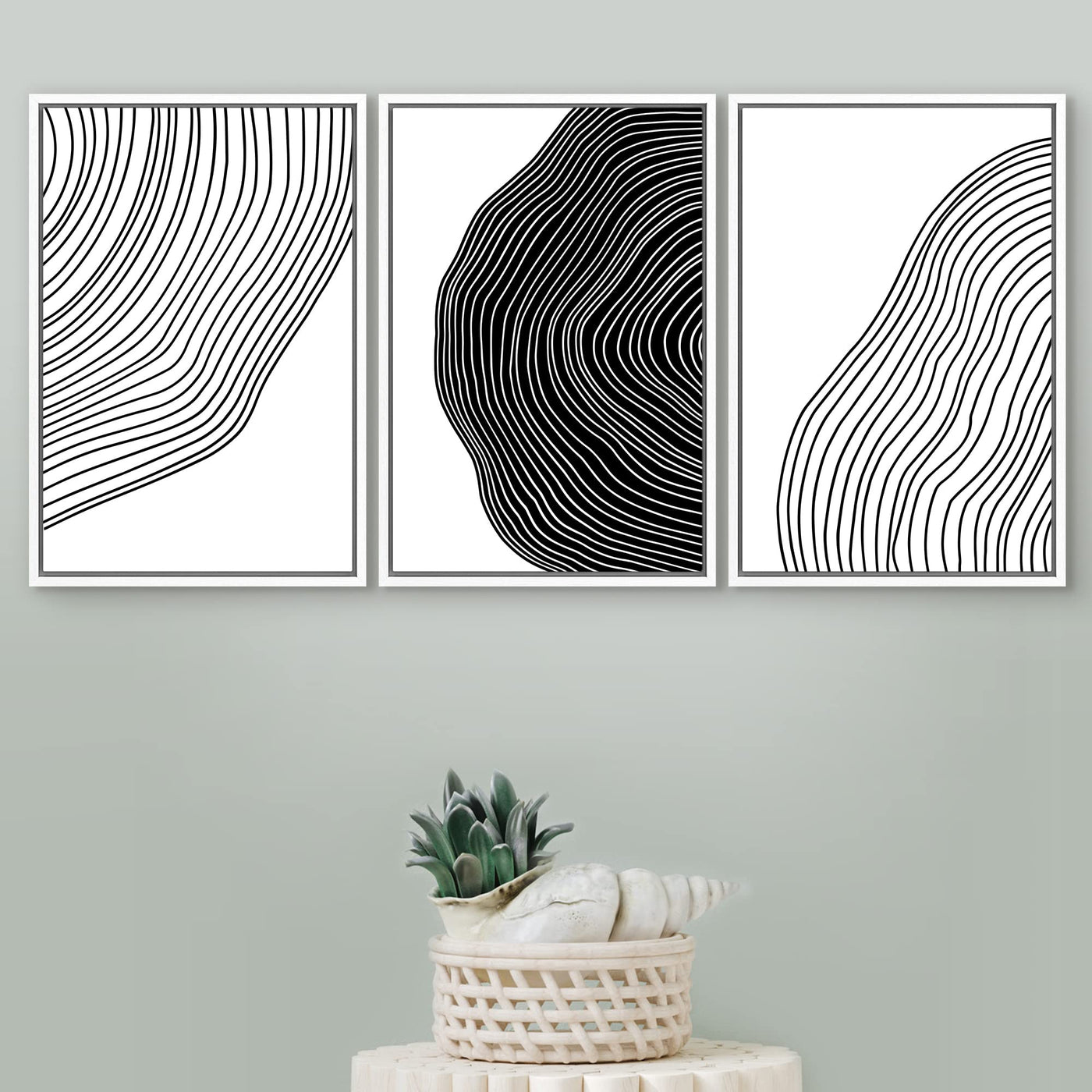 Signford Framed Canvas Print Wall Art Set Black White Spiral Ring Polygons Abstract Shapes Illustrations Modern Art Bohemian Nor