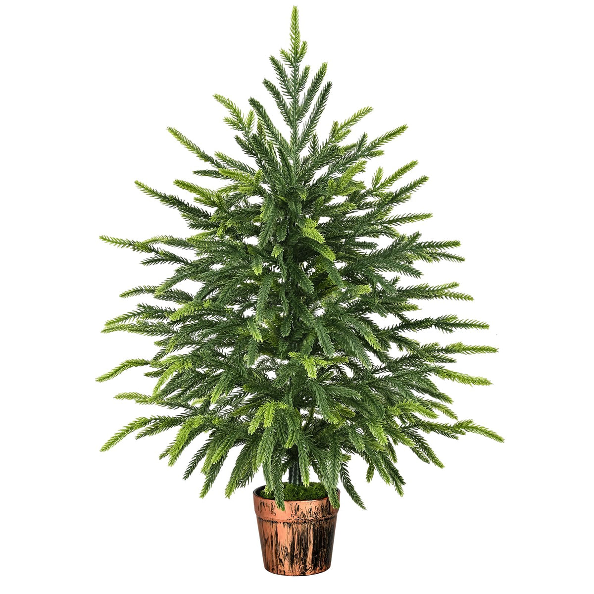 ???Lifelike Norfolk Pine Christmas Tree?The artificial norfolk pine tree crafted with true-to-life detail, this tree mimics real norfolk pine with lush, layered foliage and natural texture. Includes faux moss for added authenticity-perfect for impressing guests in any holiday space. | ???Quality PE Material?Our realistic Christmas tree with quality PE material, this unique manufacturing process that replicates the full appearance and soft, realistic touch of real pine needles. The UV-resistant materials ensure durability against sunlight, wind, and rain, perfect for Christmas indoor and outdoor decor, it retains its shape and color year after year. | ???Perfect Size & 8 Modes Lights?Deck out your space with our 2ft(24) small Christmas tree features 8 Modes LED lights (batteries not included). Its just-right size makes it a standout whether it's on your tabletop or fireplace and 8 unique lighting let you customize your festive displayit complements any space. It's the perfect touch for a joyful and welcoming atmosphere. | ???Easy to Maintain?Designed for Joy. The artificial christmas trees with flexible branches, you can easily fluff and shape your tree to lush, full perfection in minutes. No watering, no pruning, no endless cleanup of fallen needles-ever. Just a quick dusting or gentle fluffing keeps it looking spectacular all season long. | ??? Ideal Christmas Decorations ?This cypress Christmas tree brings festive charm anywhere,is ideal for use in front doors, hallways, patios, fireplaces, living rooms, dining rooms, kitchens and home decor. And it with ample branches and tips, you can easily hang ornaments, lights to create your desired festive display.