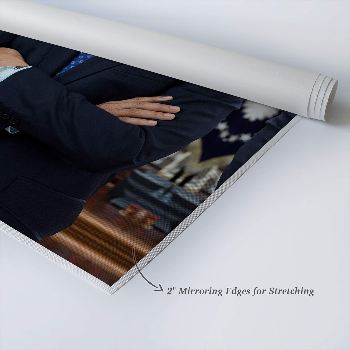 - Q: What themes does this canvas art represent? A: The canvas features a portrait of Barack Obama, the 44th President of the United States, making it suitable for political or historical themes.