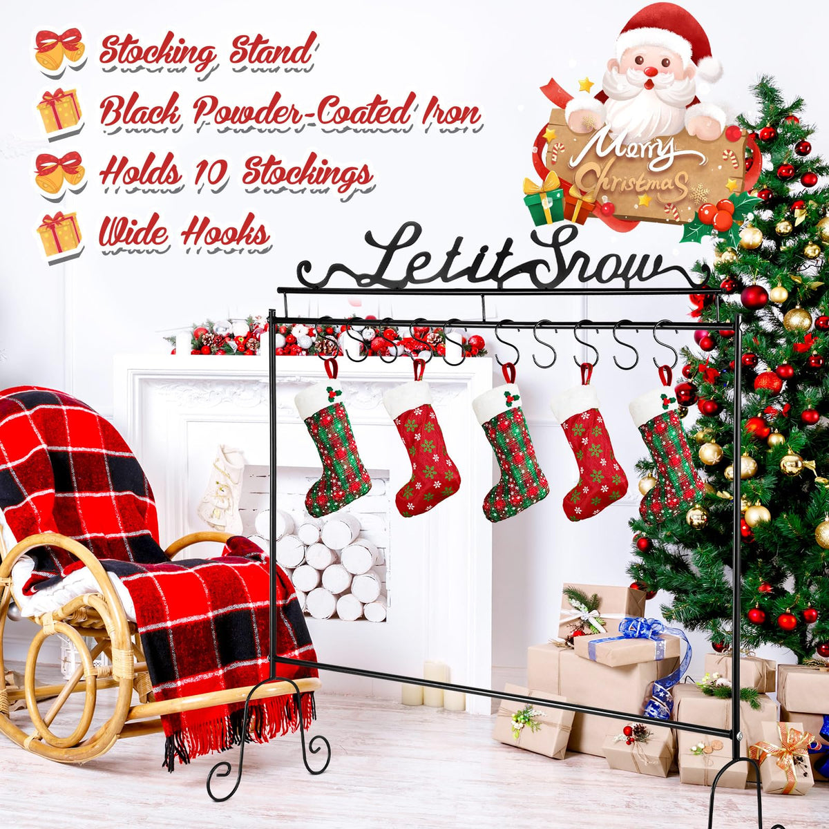 Soaoo Metal Christmas Stocking Holder Stand with 10 Hooks 33.5 x 30 x 8.3 Inch Heavy Duty Freestanding Merry Christmas Stocking