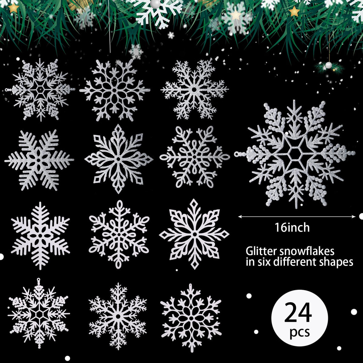 Sratte 24 Pcs 16 Inch Large Snowflake Ornaments,Giant Glitter Decorative Hanging Snowflakes,6 Designs Christmas Decorative Hangi