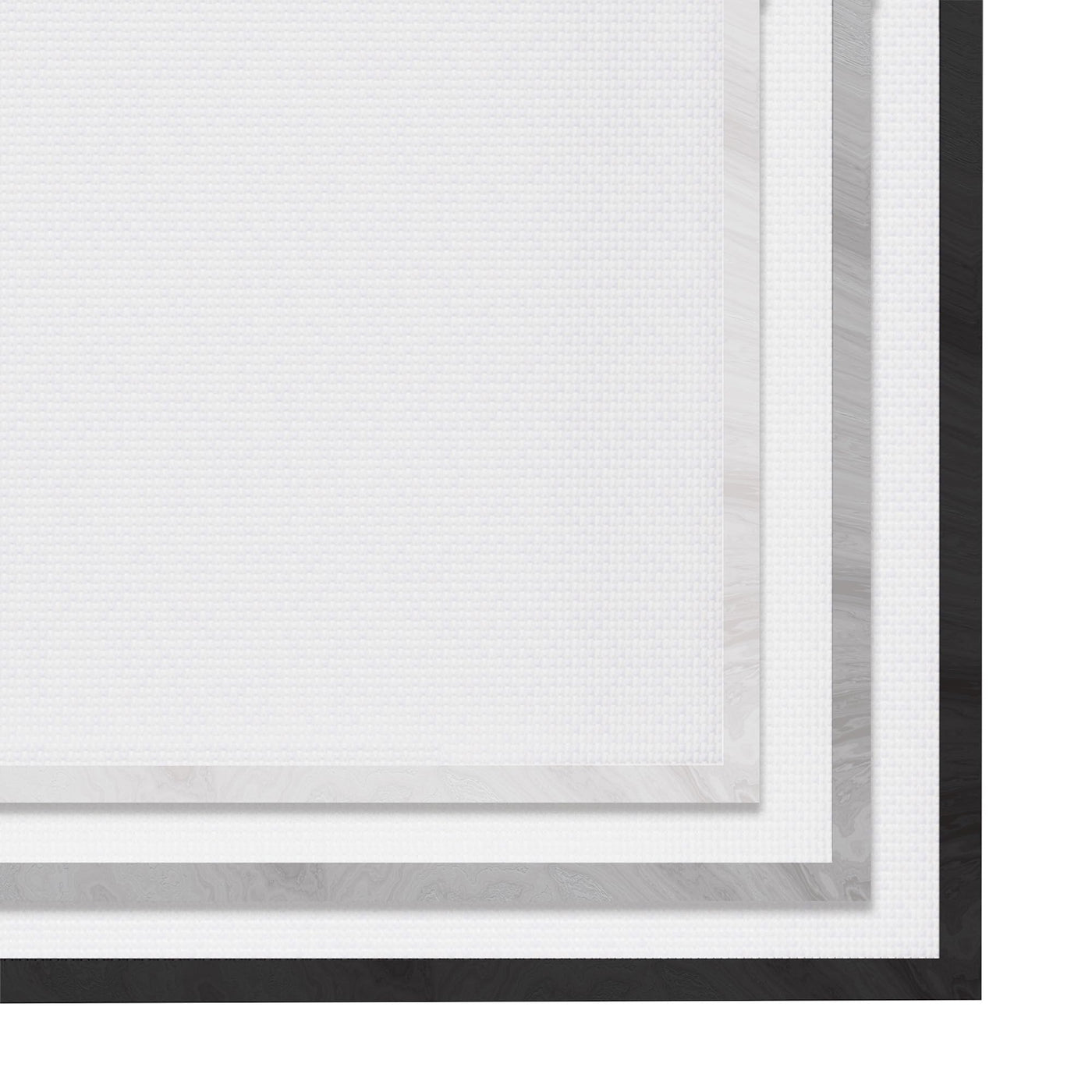 • Q: What material is used for the frame of the wall art? A: The wall art is fitted within a 1.5 inch thick ebony wood grain frame.