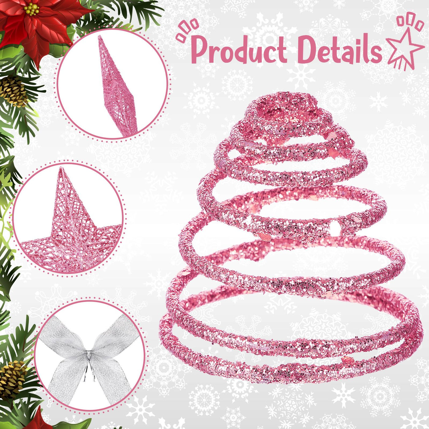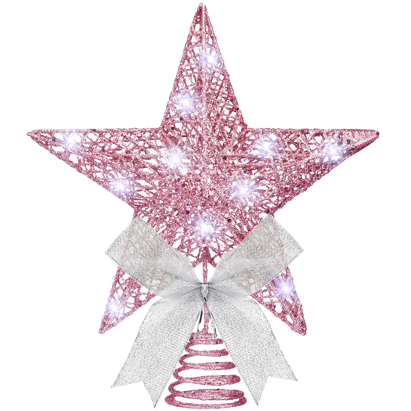 Sumind 10 Inch Christmas Star Tree Topper Glittered Star Metal Plug in Treetop Ornaments with Bow and 30 LED String Light for Ch