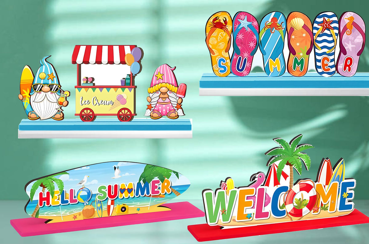 Summer Table Sign Decorations Centerpieces 4 Pcs Wood Desktop Decor for Kitchen Home Party Supplies
