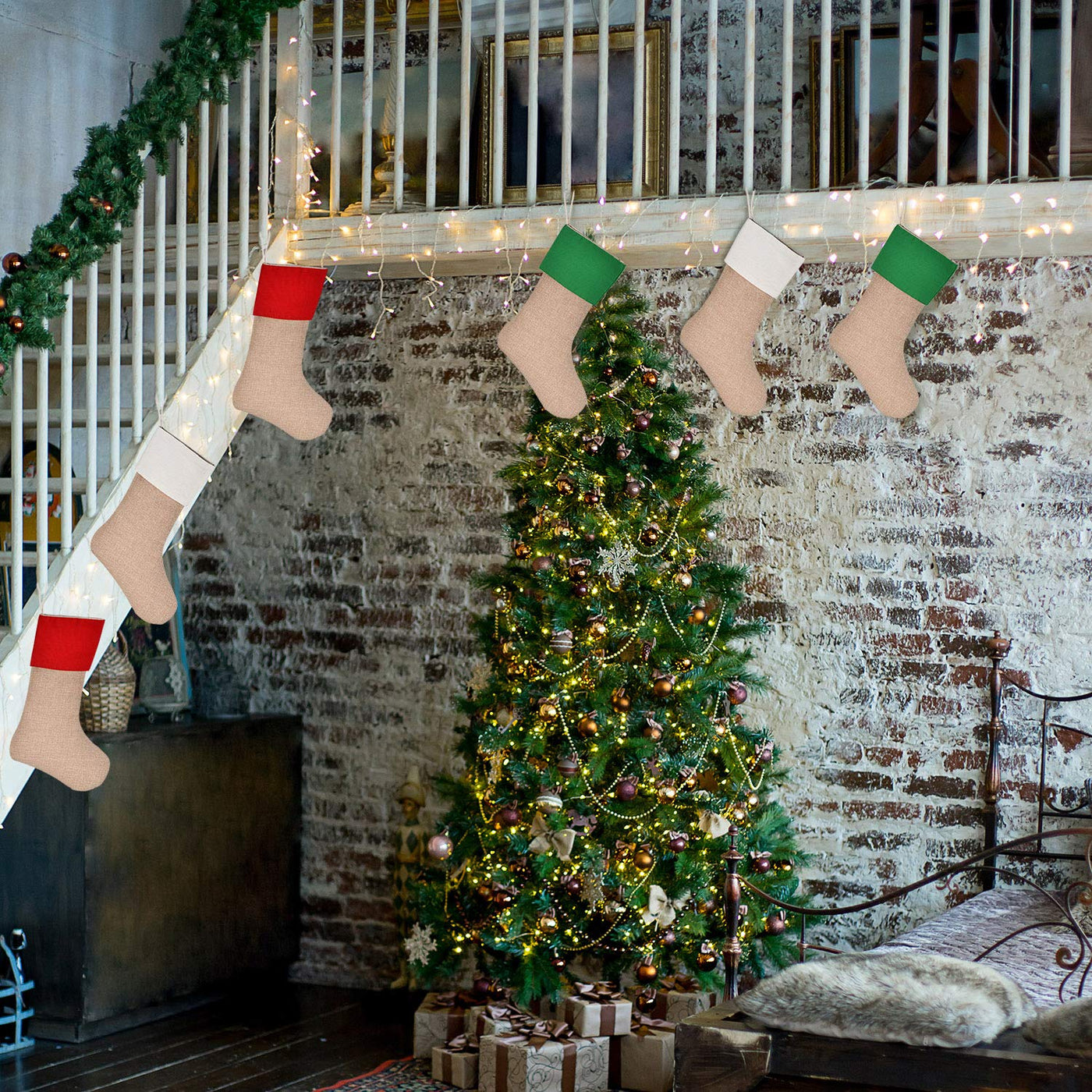 Sunshane burlap Christmas stockings Xmas fireplace hanging stockings decoration stockings for Christmas decoration DIY craft Features: The burlap Christmas stockings are made of cotton and linen, strong and durable, you can use them for a long time, suitable for Christmas and other special occasions. With proper size, it has enough space to hold Christmas presents and candies. Make DIY crafts: Plain surfaces of the stockings can be find except the cuff part, which allows you DIY your stockings by yourself, you can write or paint something on them to decorate and make them unique. Wide applications: These stockings are great Christmas home decorations, they can be hung on a Christmas tree, fireplace, window, or any place you want to decorate, also you can give them to the children as gifts. Specifications: Cuff to heal: approx. 40 cm/ 16 inches Cuff width: approx. 18 cm/ 7 inches Heal to toe: approx. 29 cm/ 11.5 inches Material: cotton and linen Color and shape: as pictures shown Note: Due to manual measurement, the size may have a certain error. Due to the different batches, and the difference between different monitors, there may a slight color difference exist.