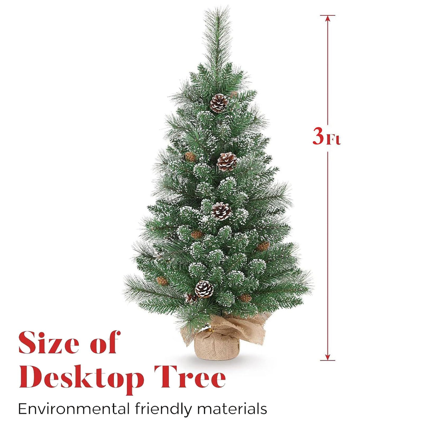 Tabletop Christmas Tree, 3FT Burlap Base with 35 LED Lights, White Tipped Branches, Prelit Small Artificial Tabletop Snow Flocke