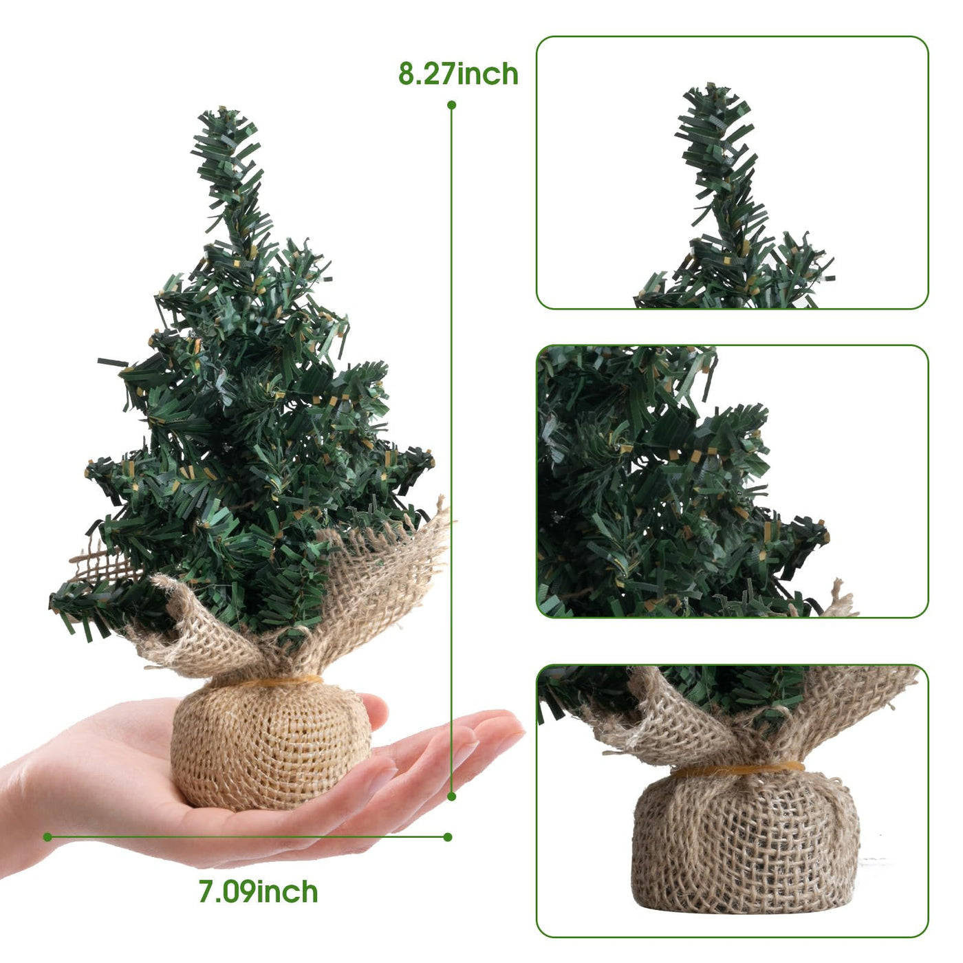 Tabletop Mini Artificial Christmas Tree 6.7 Inch - Realistic PE Branches with Burlap Base, Non-Lit, Compact Xmas Holiday Decor f