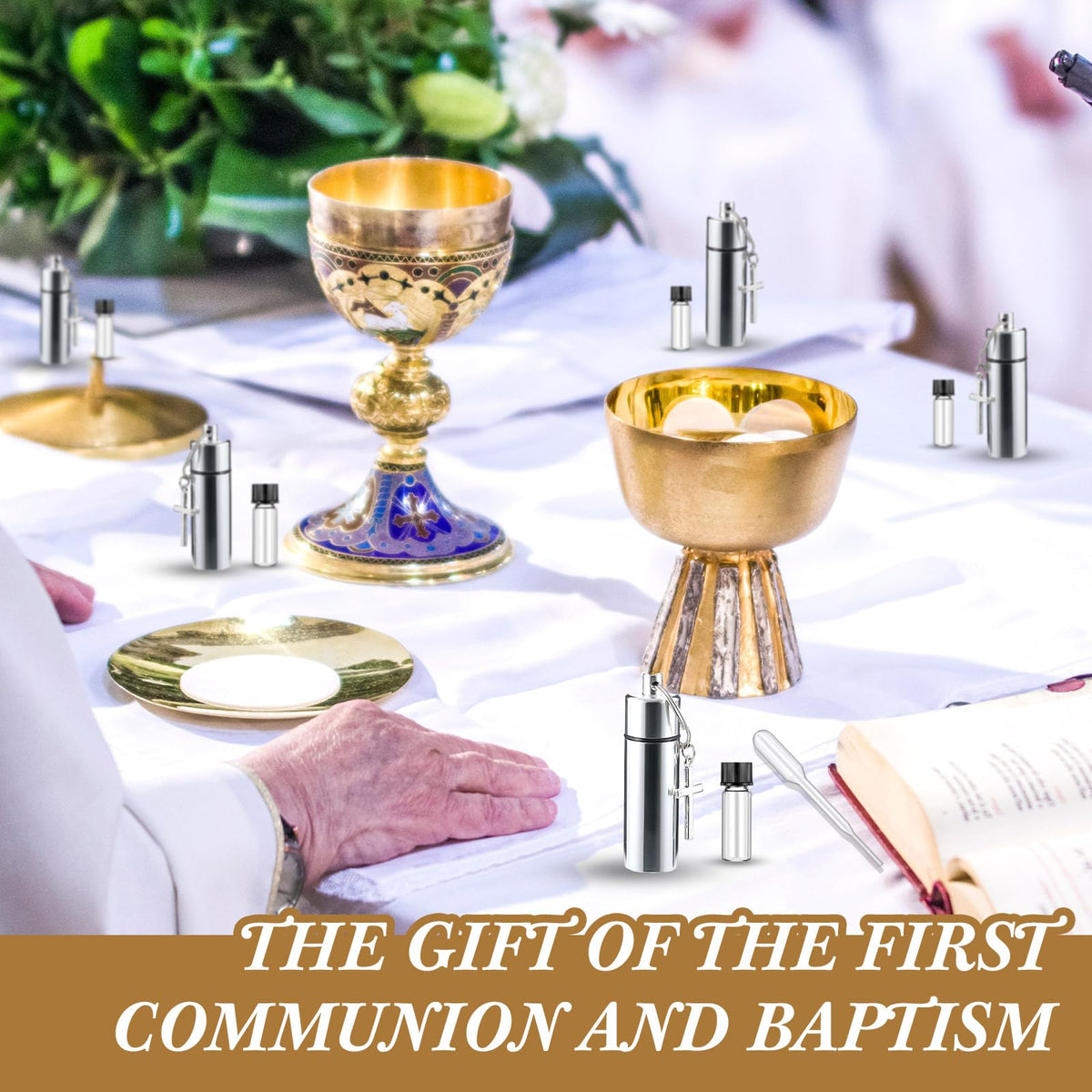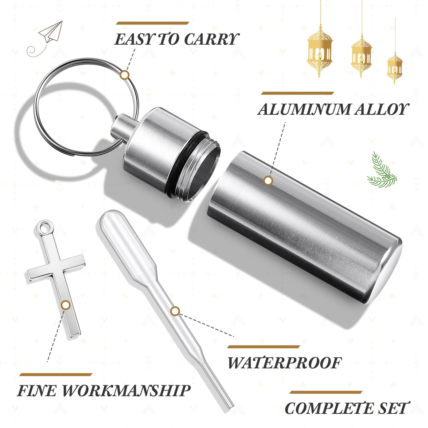 Tandefio 40 Sets Anointing Oil Bottles Keychain Vial Holy Water Container with Dropper Cross Pendant for Travel Baptism Favor (S