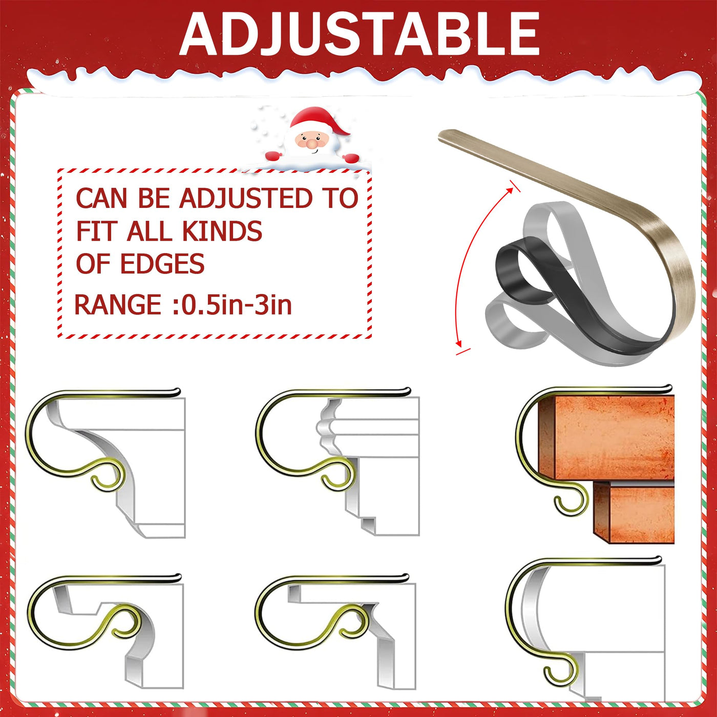 TAROSE Stocking Holders for Mantle, Christmas Stocking Holder Set of 4, Mantle Clip Fireplace Hooks Hanger for Christmas Party D